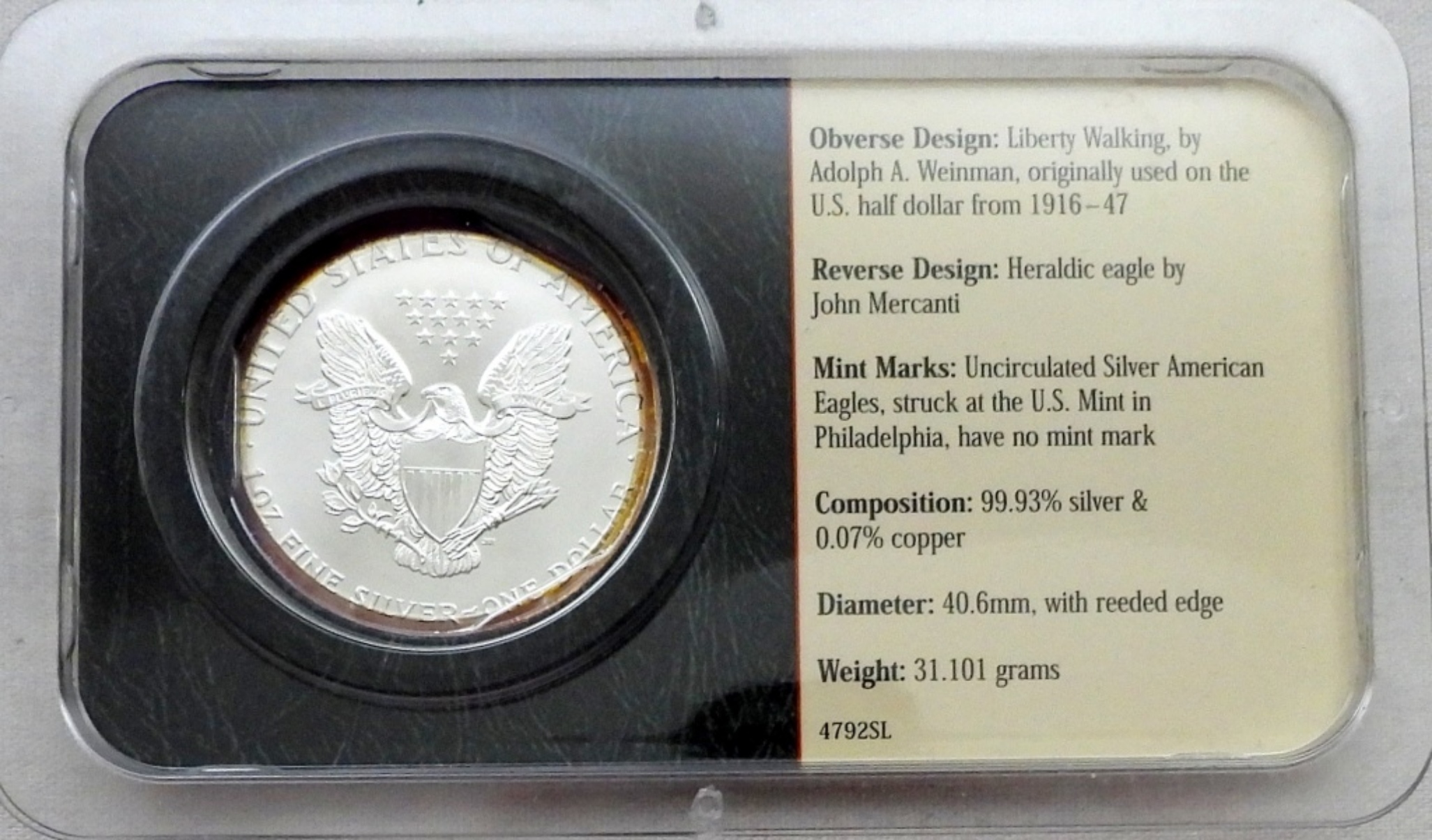 AMERICAN SILVER EAGLE 1ozt .999 PURE SILVER