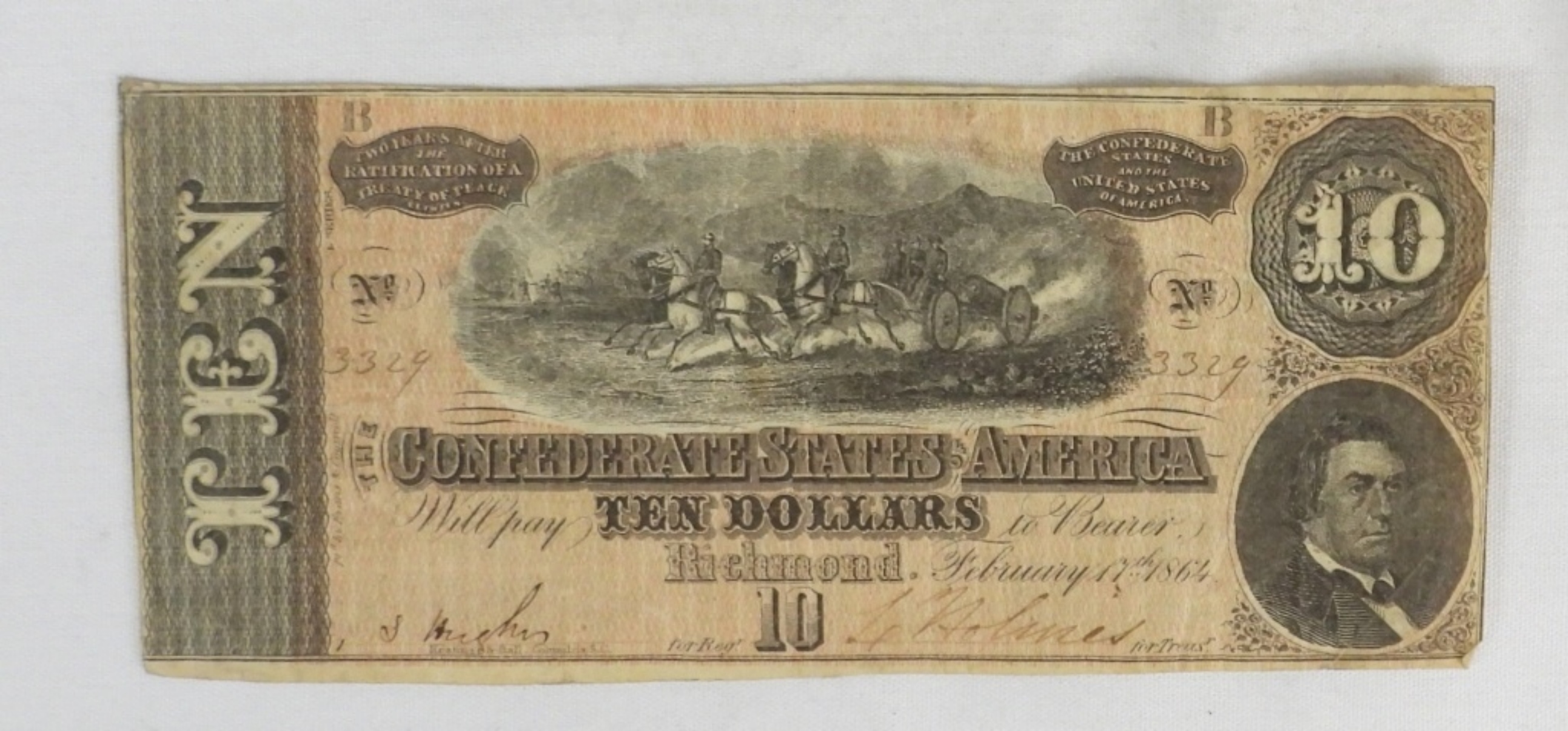 1864 $10 THE CONFEDERATE STATES OF AMERICA $10 DOLLAR NOTE ,RICHMOND .CIRCULATED AND WELL PRESERVED