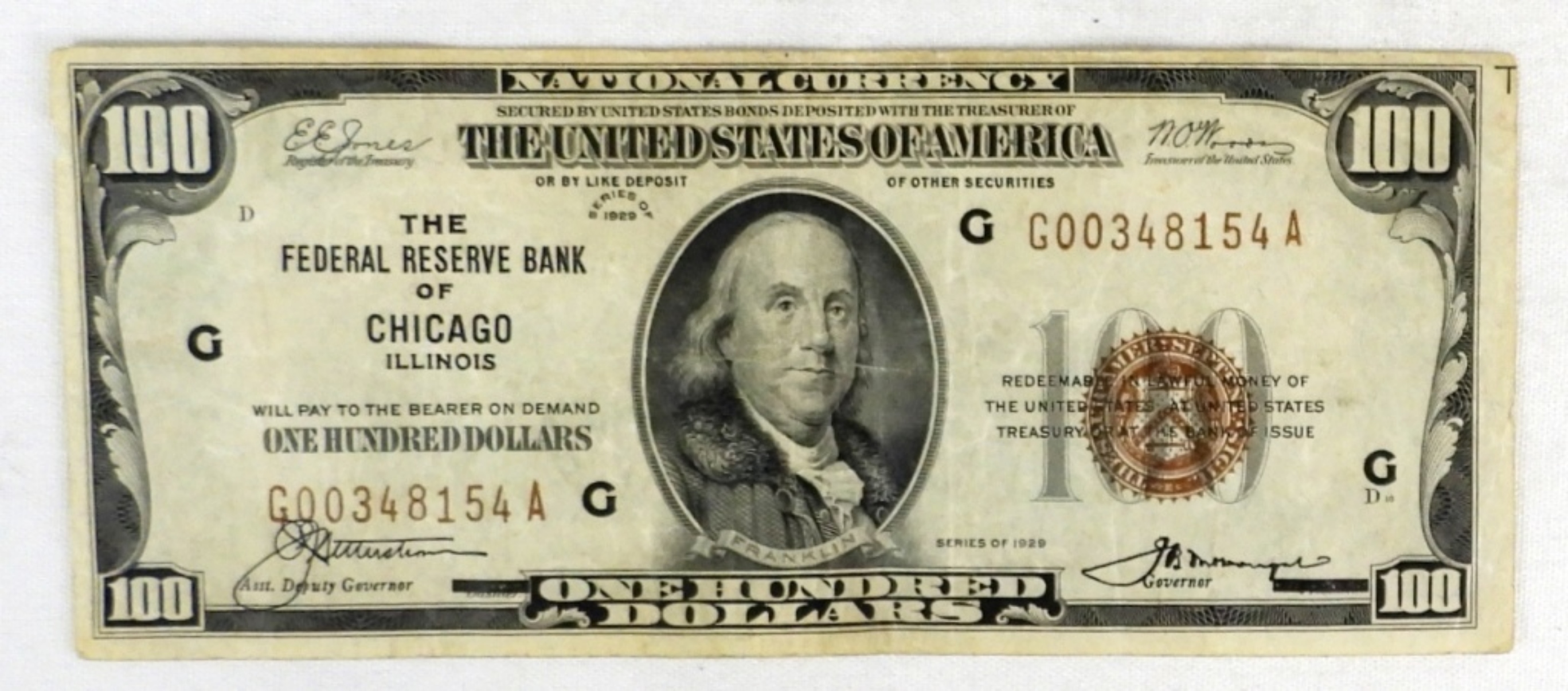 1929 $ 100 US NATIONAL CURRENCY THE FEDERAL BANK OF CHICAGO,NICE CIRC WELL PRESERVED
