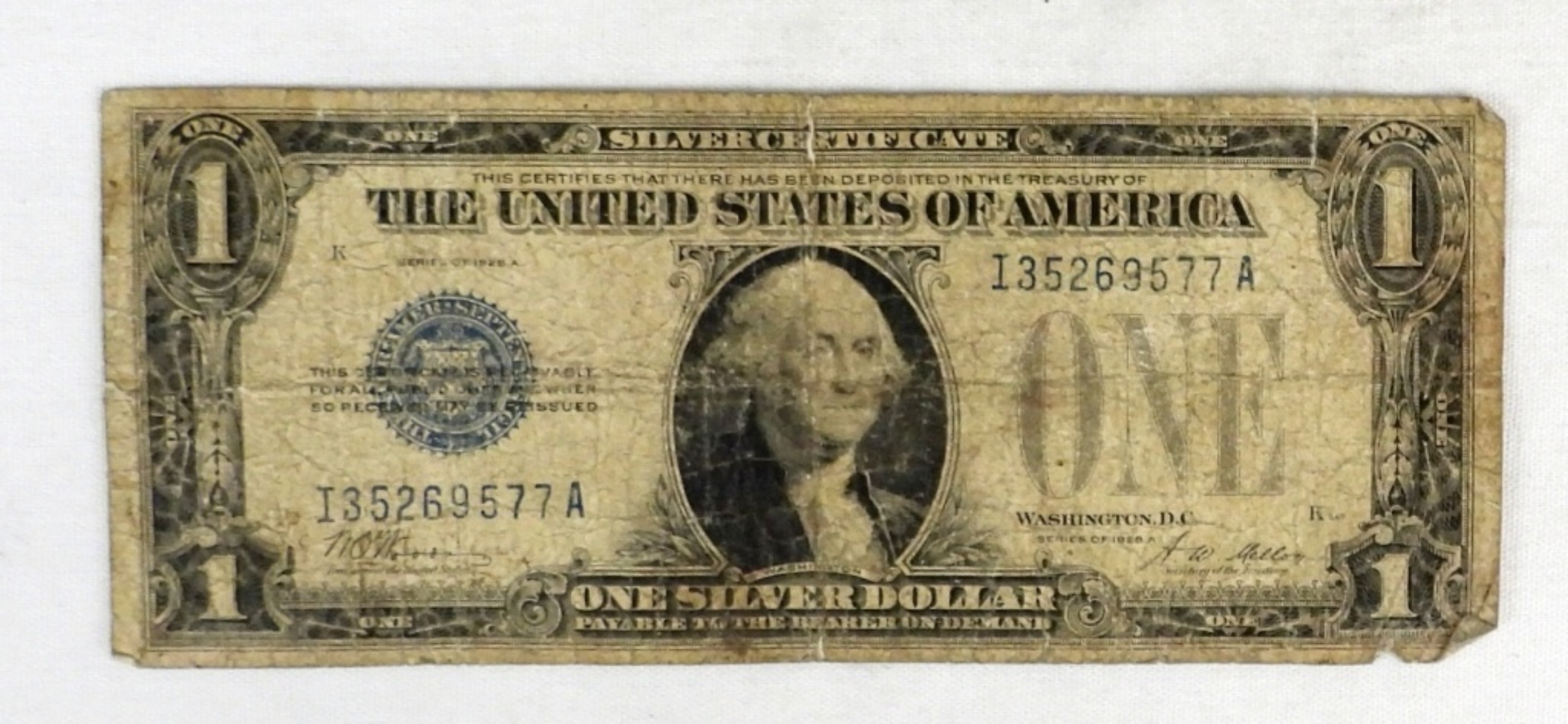 1928 $1 FUNNY BACK SILVER CERTIFICATE, HEAVY CIRC