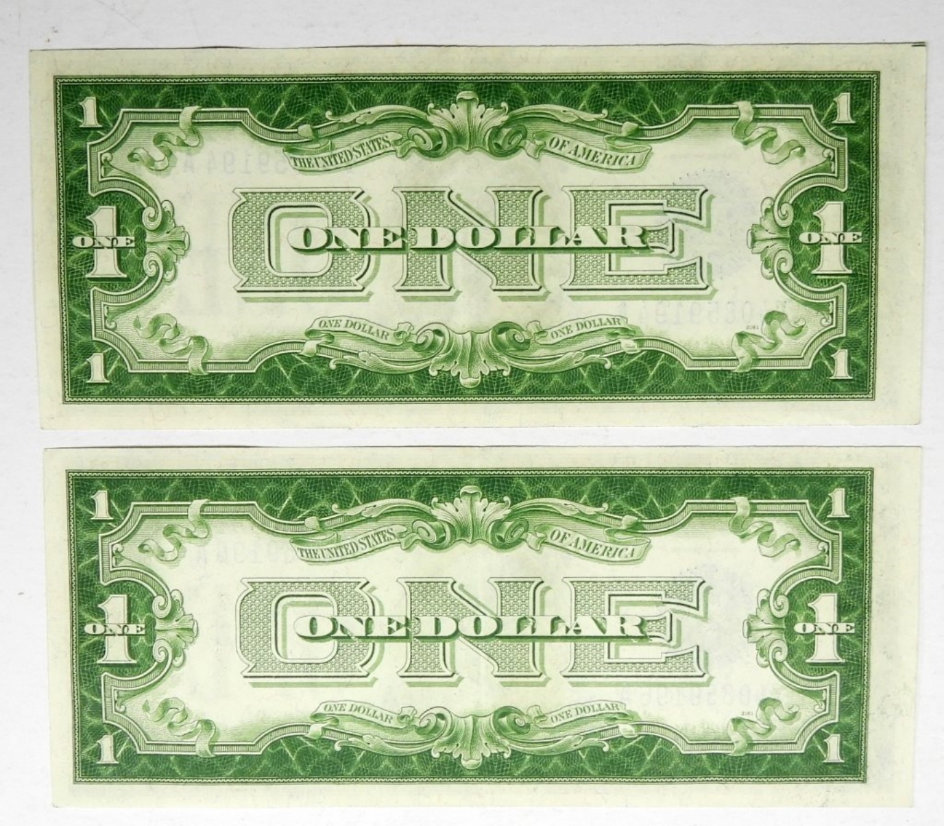 (2) 1928 A $1 SILVER CERTS (FUNNY BACK) AU+