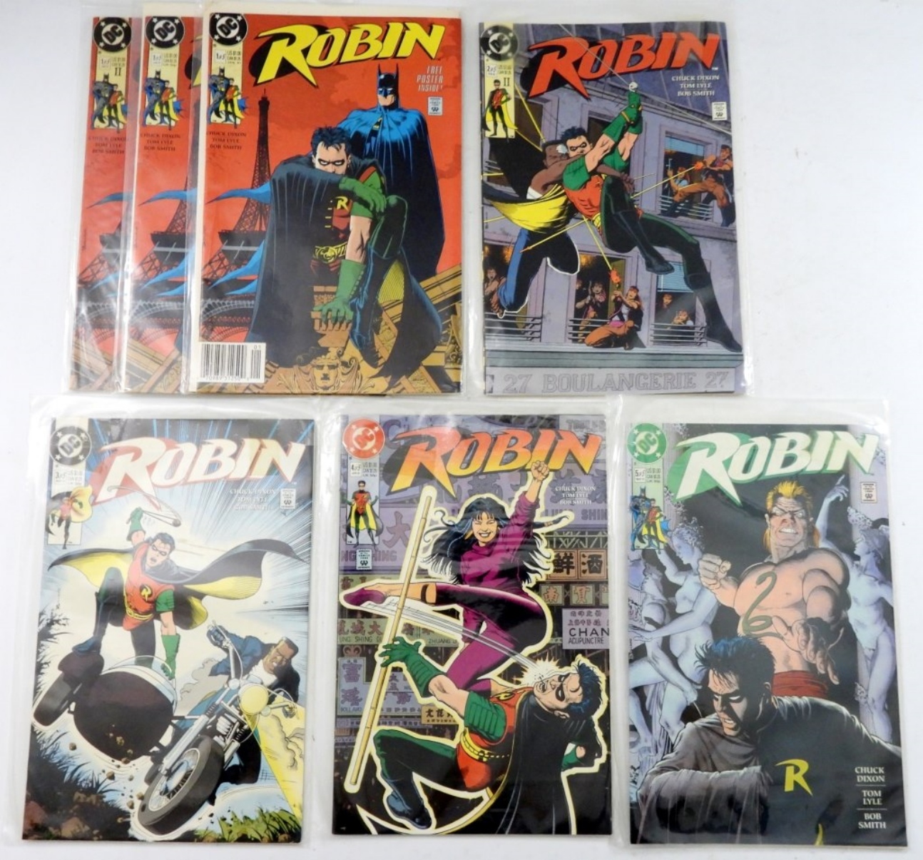 1990 ROBIN #1 (3 COPIES) 1 WITH POSTER,#2,#3,#4,#5. COMPLETE SET FINE/VG