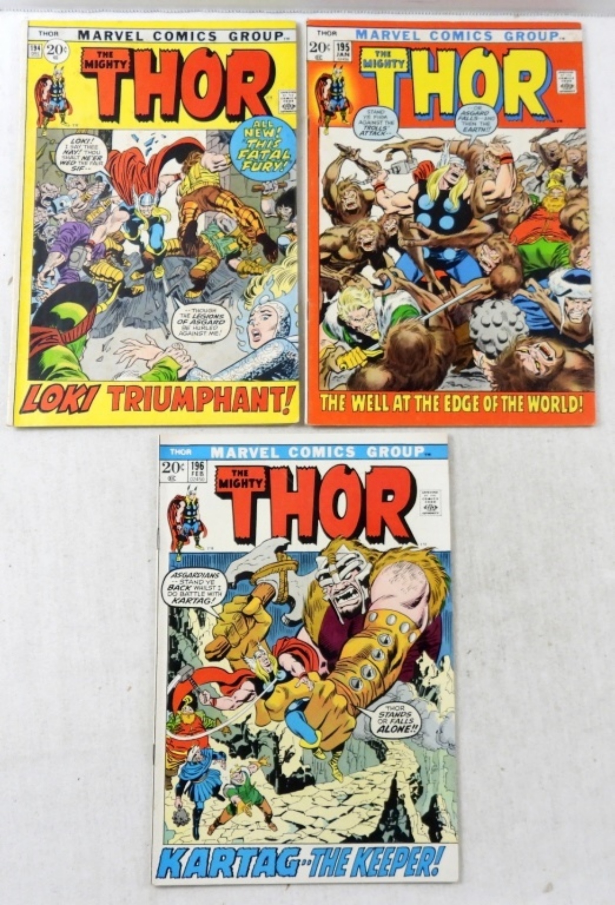 (3)BRONZE MARVEL THE MIGHTY THOR # 194LOKI TRIUMPHANT,#195 ,# 196 KARTAG THE KEEPER!(