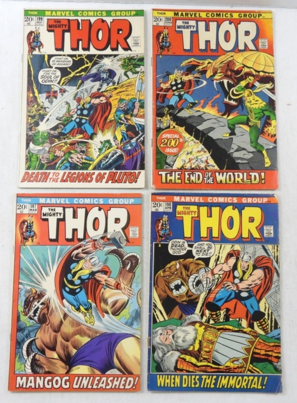 (4)BRONZE MARVEL THE MIGHTY THOR #197 MANGOG UNLEASHED1VG/VF),#198 WHEN DIES THE IMMORTAL!,#191ST APPEARANCE OF EGO-PRIME!9,#200 RAGNAROCK ISSUE!( VG-VF)