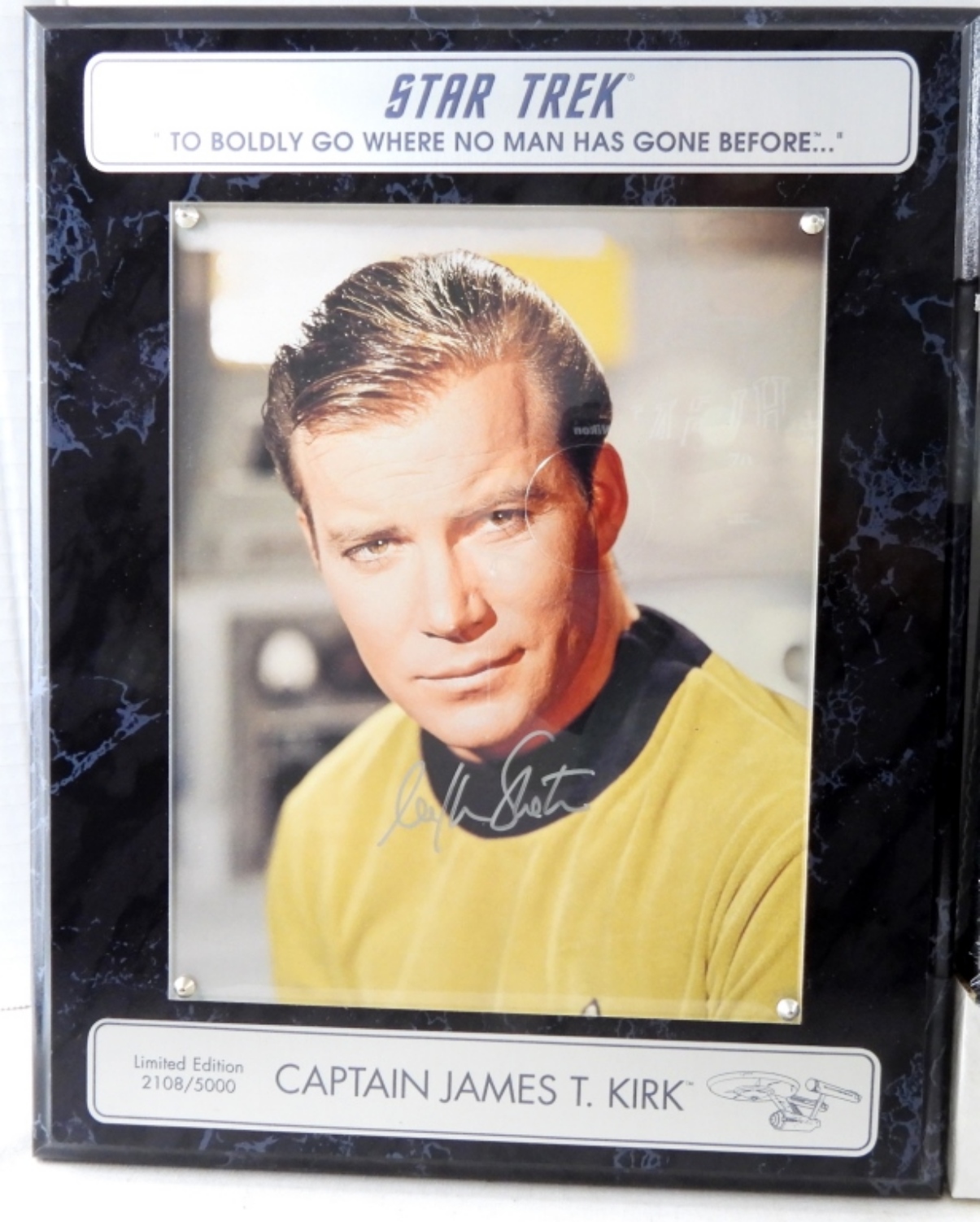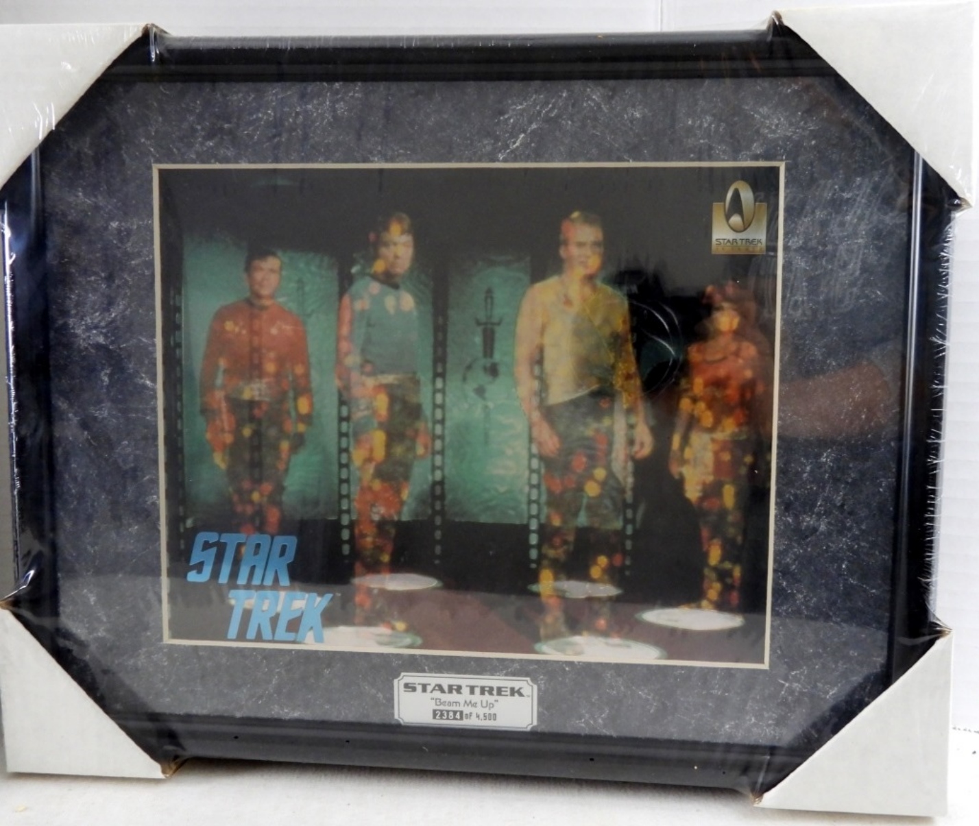 on STAR TREK PLAQUE #2108/5000 w/SCORBOARD COA not verified & BEAM ME UP CHROME ART FRAMED PIECE 11×14 #2384/4500 – OVERSIZED LOT
