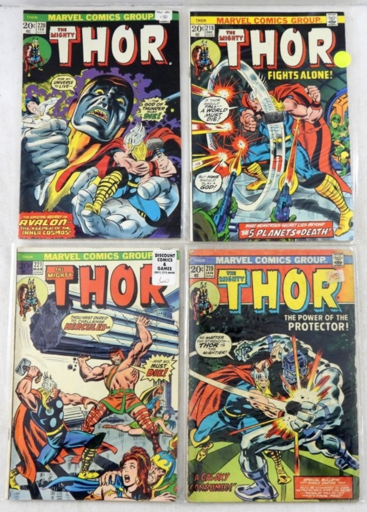(4) BRONZE MARVEL THE MIGHTY THOR #218THE 5 PLANETS OF DEATH,#219 AVALON THE KEEPER OF THE INNER COSMOS,#220 THE POWER OF THE PROTECTOR!,#221 HERCULES!(G-VG+)