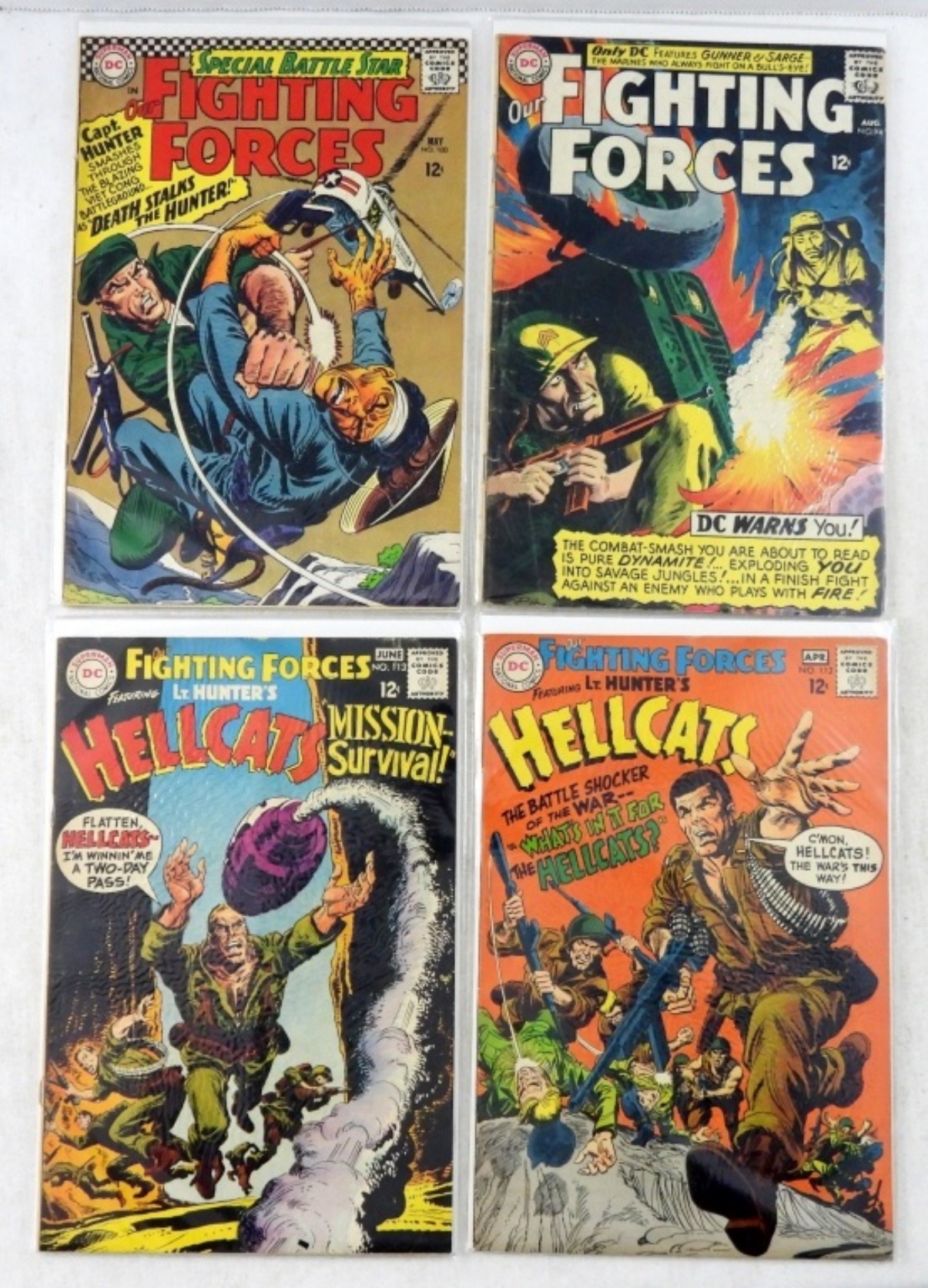 (14 ) DC OUR FIGHTING FORCES #94 DC WARN YOU !, #96 DESERT AMBUSH,#100,104 NIGHT RAID IN VIETNAM,#105 FEATURING CAPT. HUNTER,#106, LT. HUNTERS HELLCATS, #107,#108KILL THE WOLF PACK!,#109 BURN, RAIDER,
