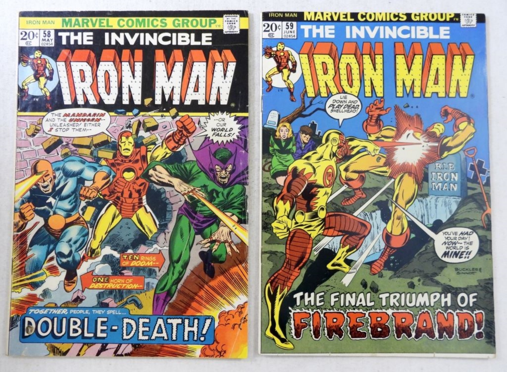 BRONZE MARVEL IRON MAN # 58 DOUBLE DEATH ( BINDER HOLE IN COMIC) & #59 FIREBRAND! ( FAIR /GOOD)