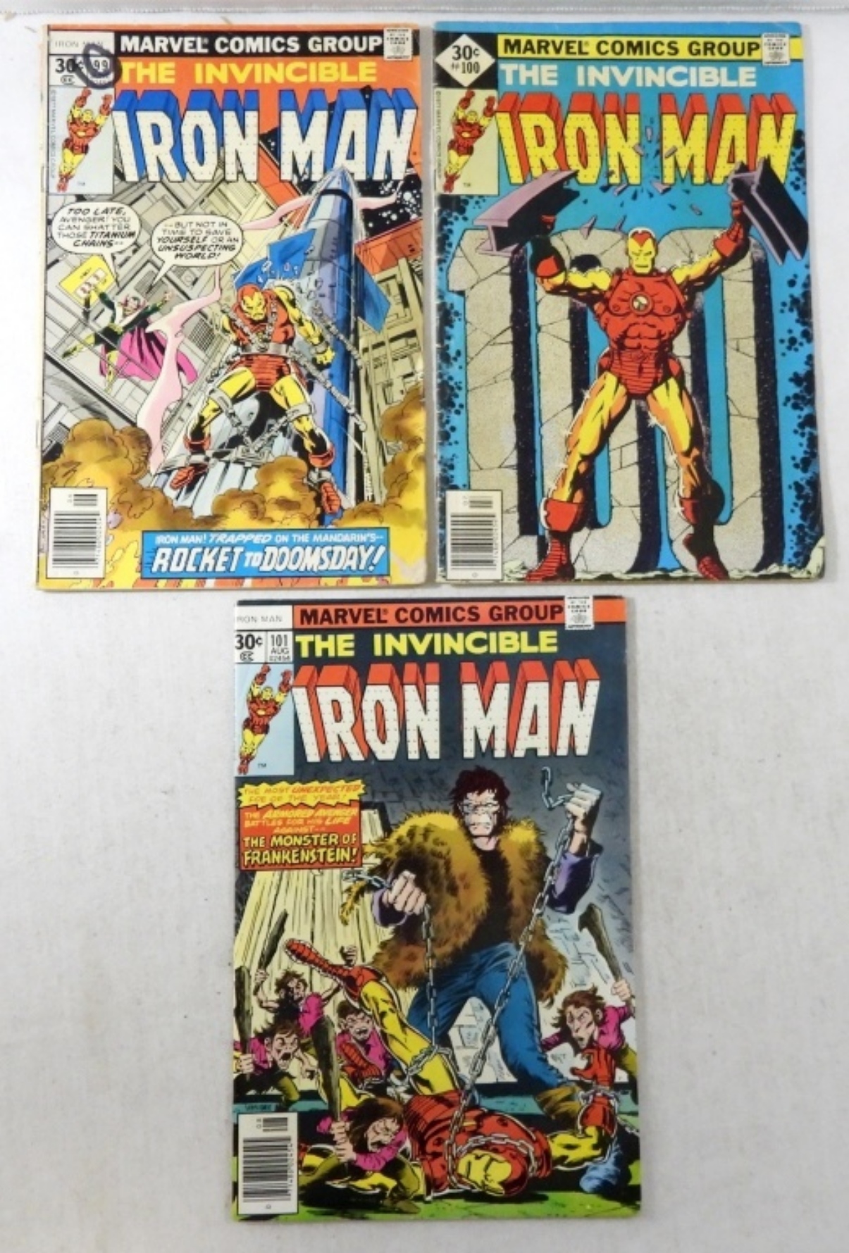 (3) BRONZE MARVEL IRON MAN #99 ROCKET TO DOOMS DAY, # 100 MILESTONE! 100 ISSUE!!!, & #101 1ST DREADKNIGHT APPEARANCE , FRANKENSTEIN ( FAIR G/VG)