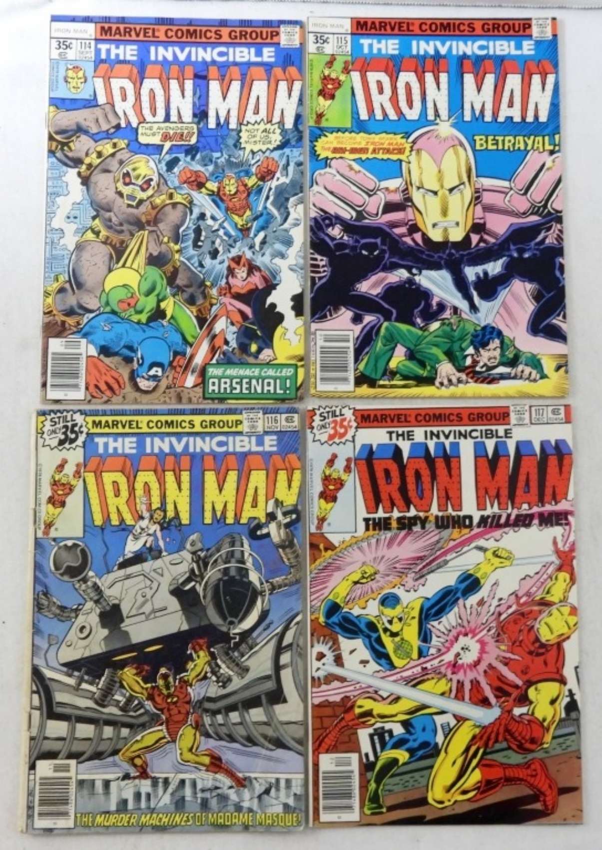 (4) BRONZE MARVEL IRON MAN #114 1ST APPEARANCE OF ARSENAL,#115 ,#116 DEATH OF COUNT NAFARIA,#1171ST APPEARANCE OF BETHANY CABE