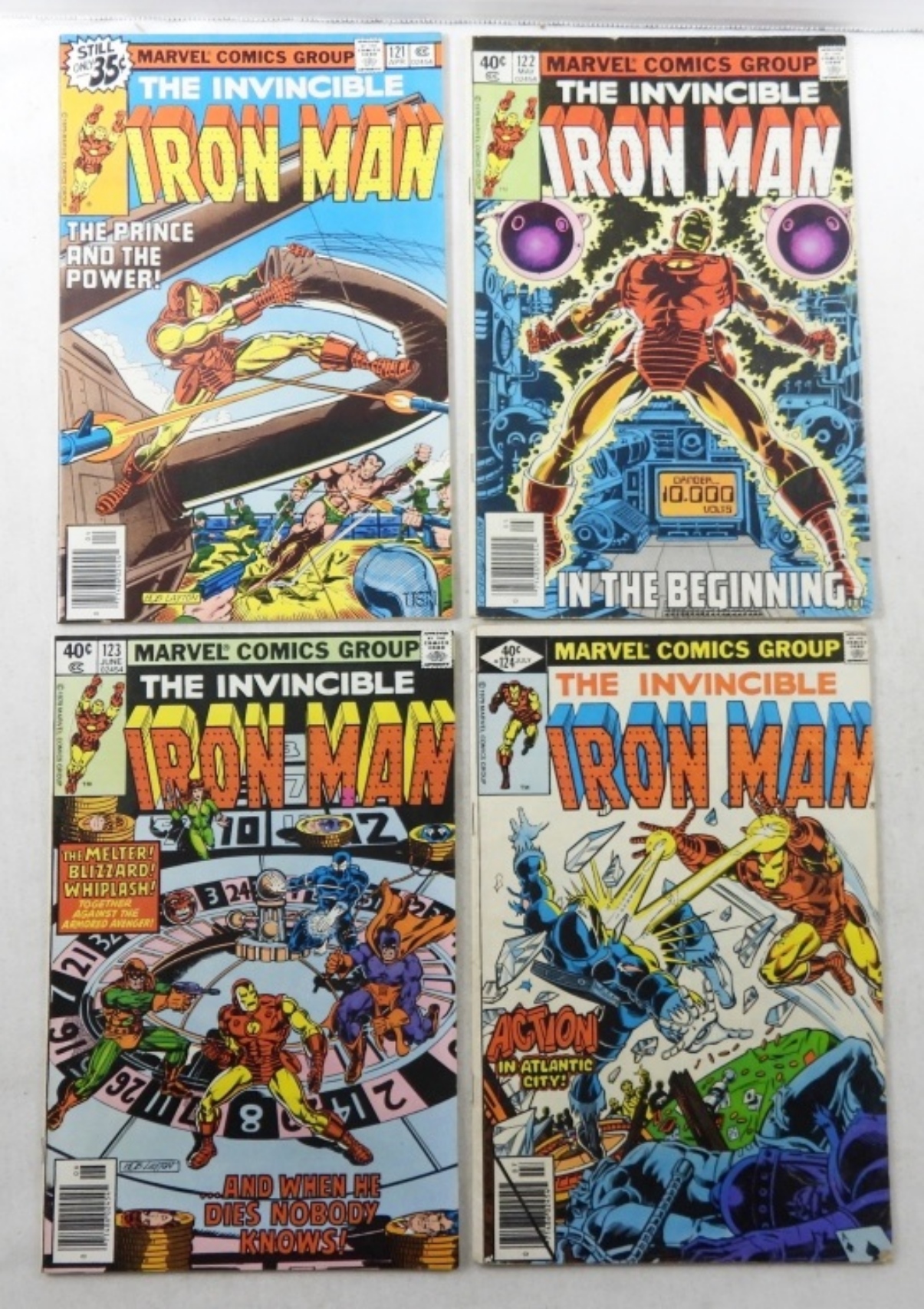(4) BRONZE MARVEL IRON MAN #121 DEMON IN A BOTTLE PART 2 ,#122 ORIGIN OF TONY STARK, , #123 DEMON IN A BOTTLE PART 4-#124 DEMON IN A BOTTLE PART 5 (G-VG+)