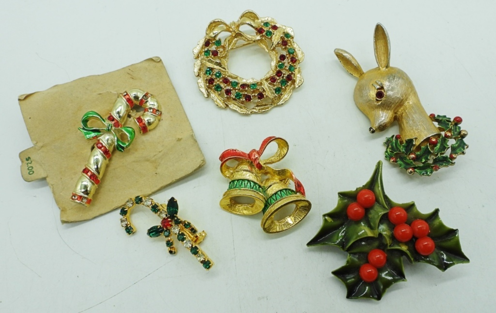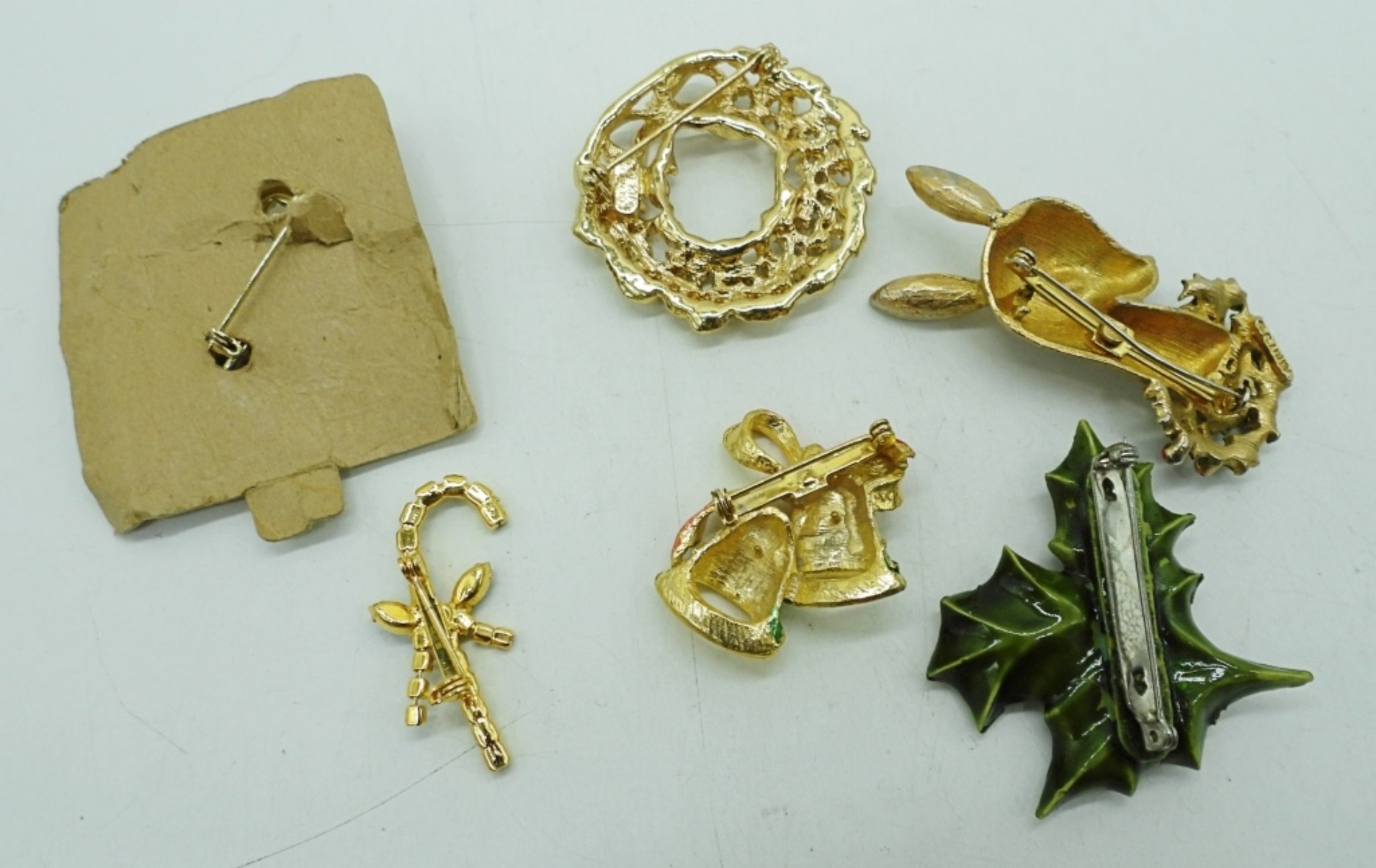 SIX VINTAGE CHRISTMAS BROOCHES. 1″-2.5″.