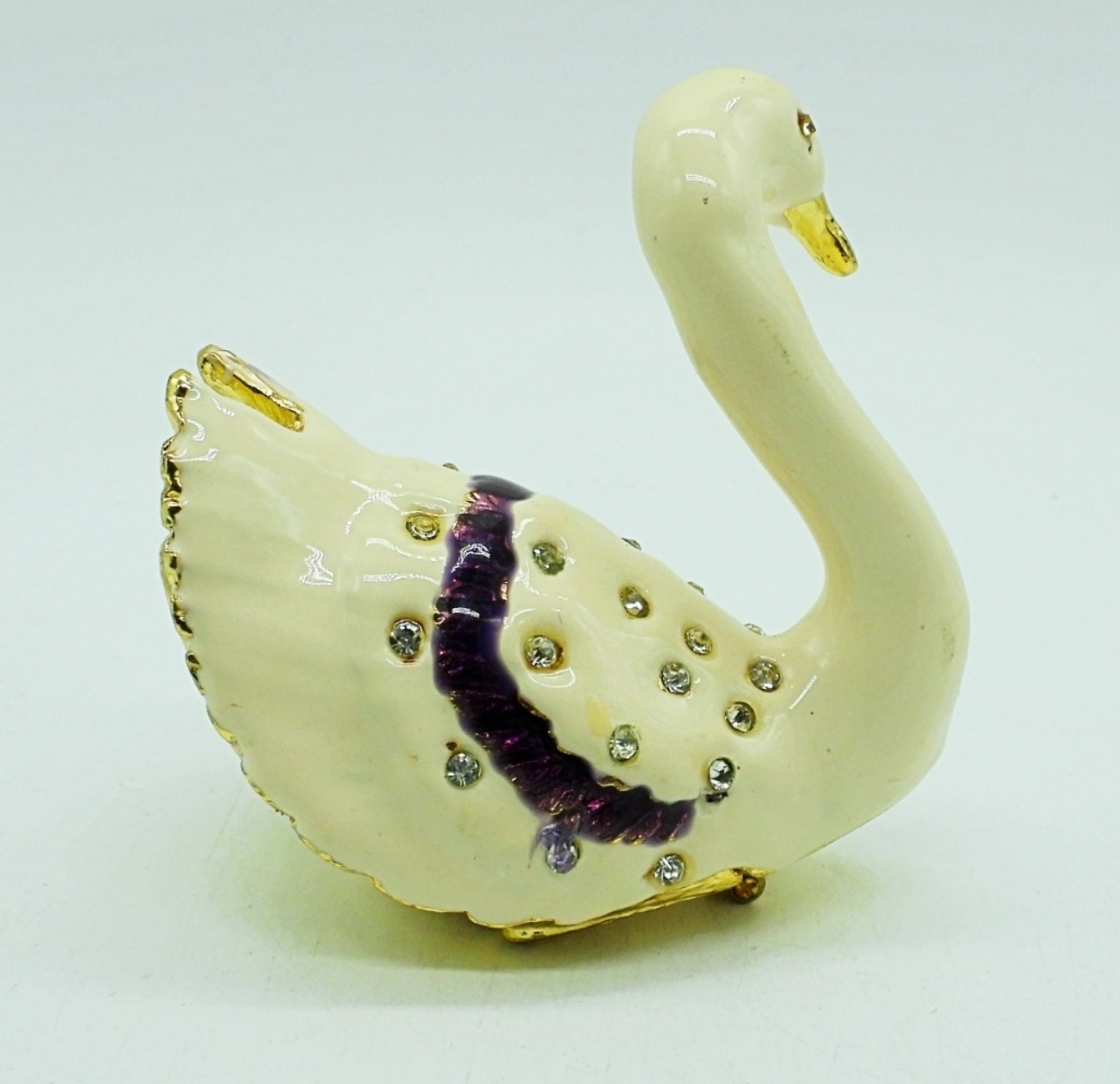 “OBJECT D’ART” # 8, GRACE. SWAN TRINKET BOX, MAGNET DOES NOT HOLD WELL. SWAROVSKI CRYSTALS. COMES IN ORIGINAL BOX & PAPERS.