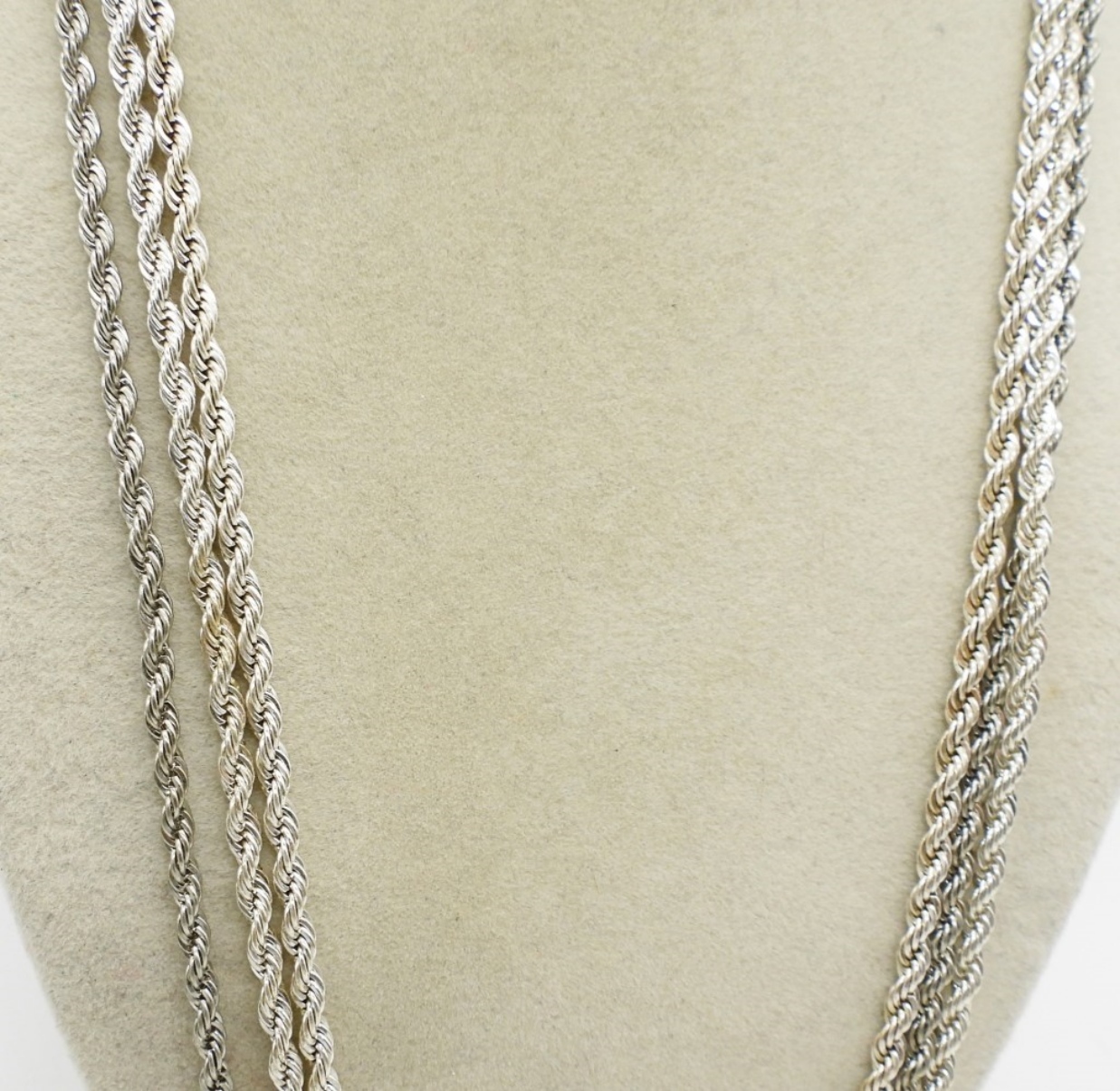 THREE SILVER TONE FASHION CHAIN NECKLACES, 23 & 24″. TWO SILVER TONE BRACELETS, 7 & 7.5″