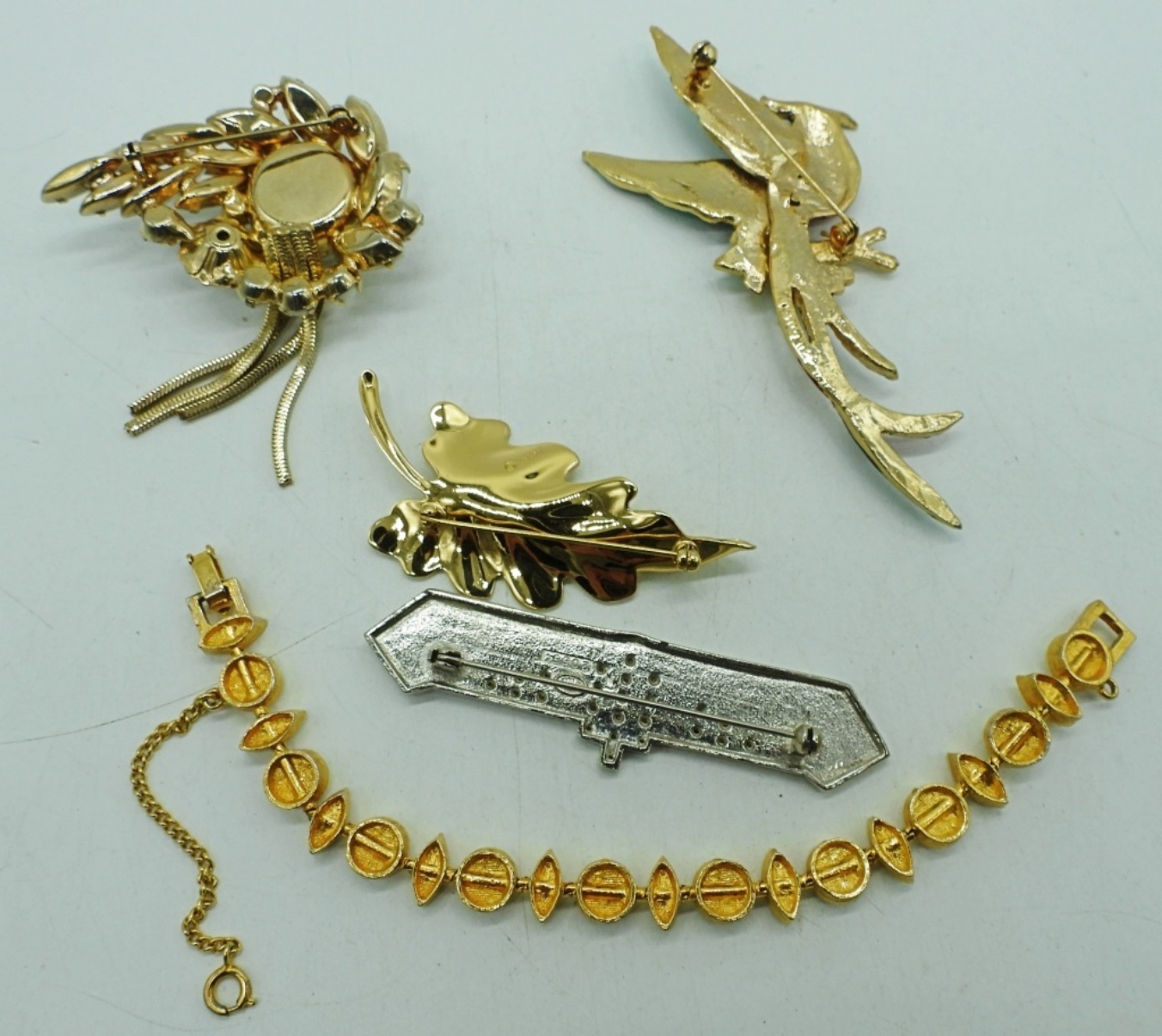 FOUR BROOCHES, 3″-4″. BRACELET, 7″.