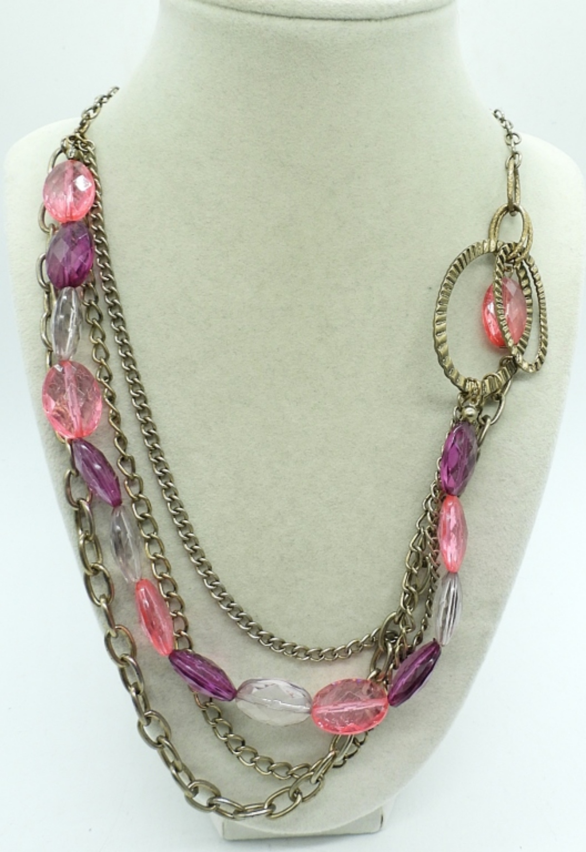 5 PIECE LADIES BEADED NECKLACE & MORE , (3) 30″ NECKLACE WITH PINK AND PURPLE AND BLACK BEADS, (2) BEADED BRACELETS