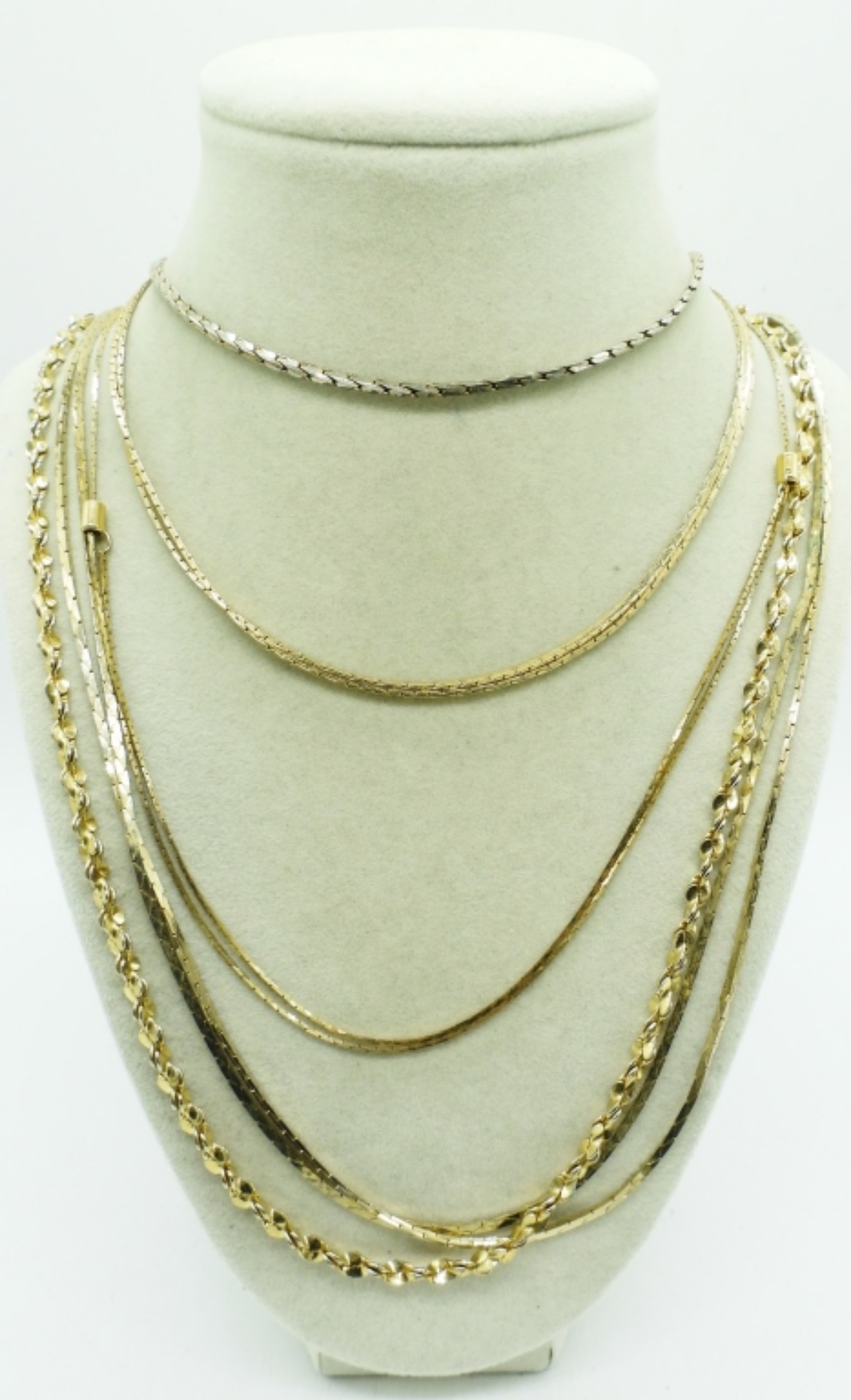 FOUR FASHION CHAIN NECKLACES. 24″, 28″, 29″, 30″.