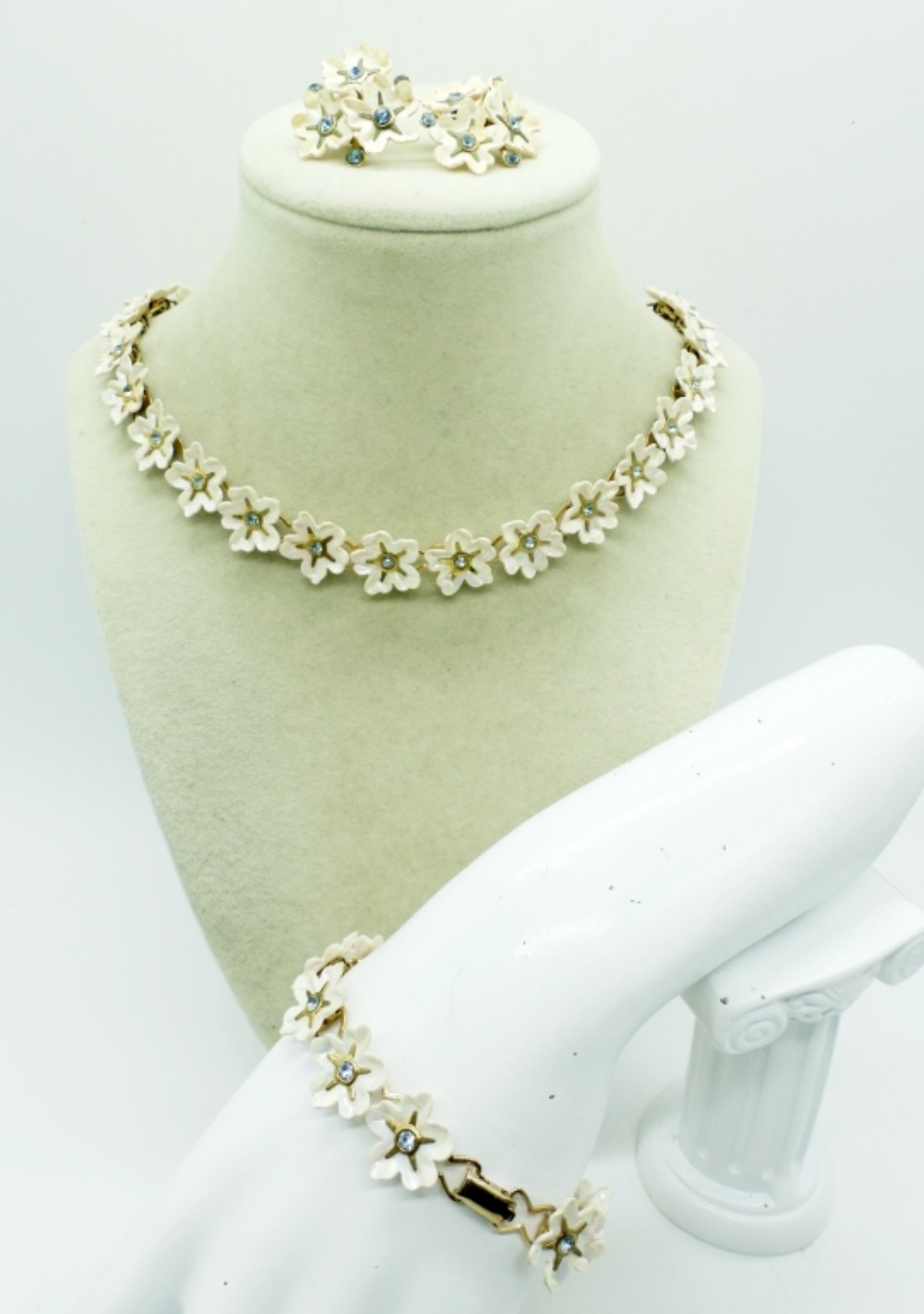 NECKLACE, 17″. BRACELET, 7″. CLIP ON EARRINGS
