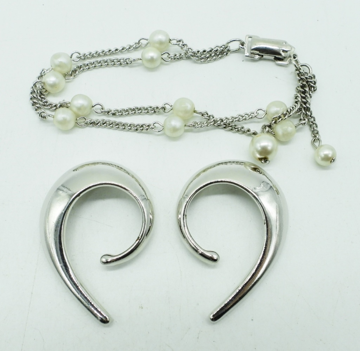 CORO SILVER TONE EAR CUFFS & BRACELET 7″.