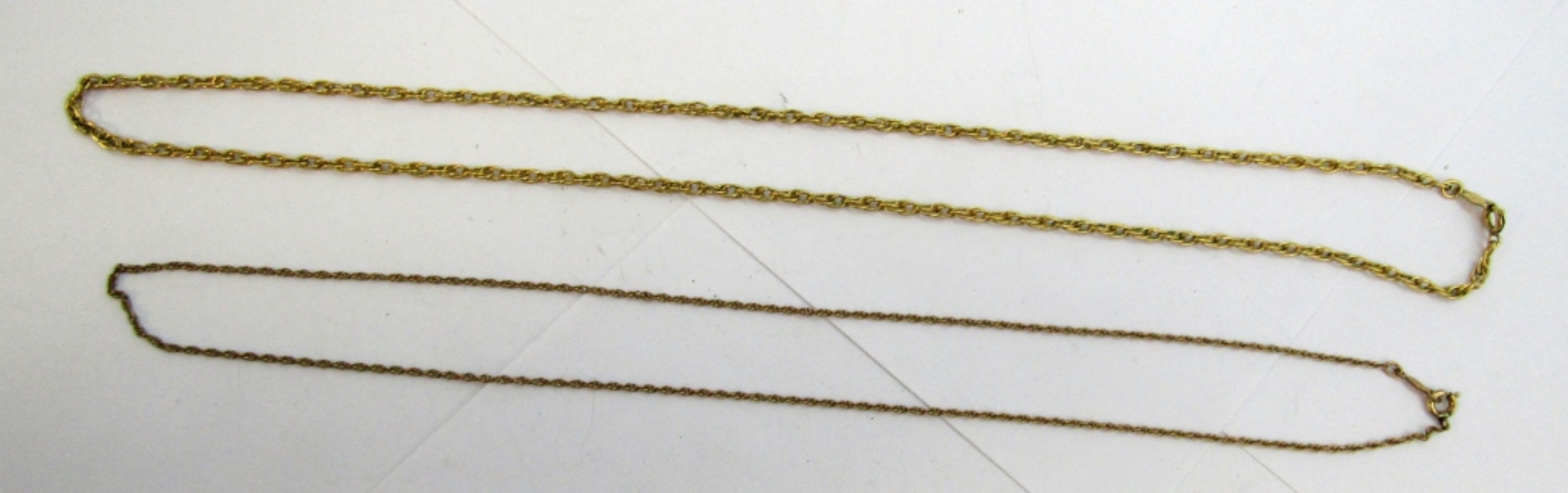 TWO GOLD TONE/ 12KGF CHAINS. 18″ & 20″.