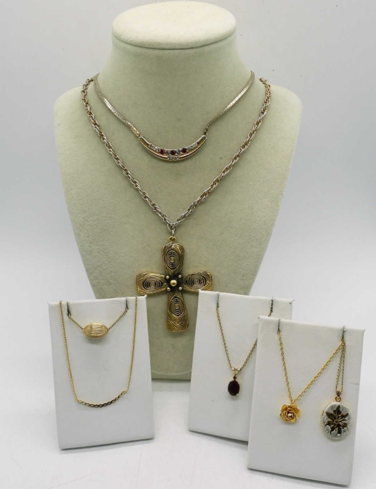 SEVEN GOLD TONE FASHION NECKLACES, 16-24″.