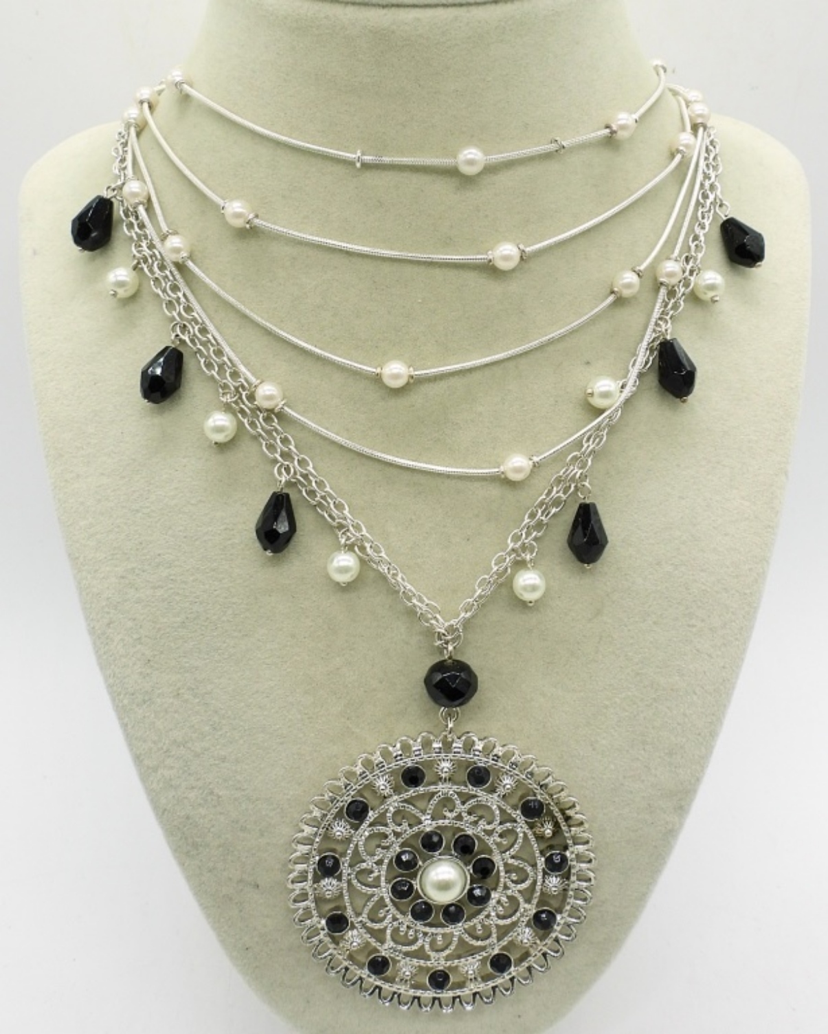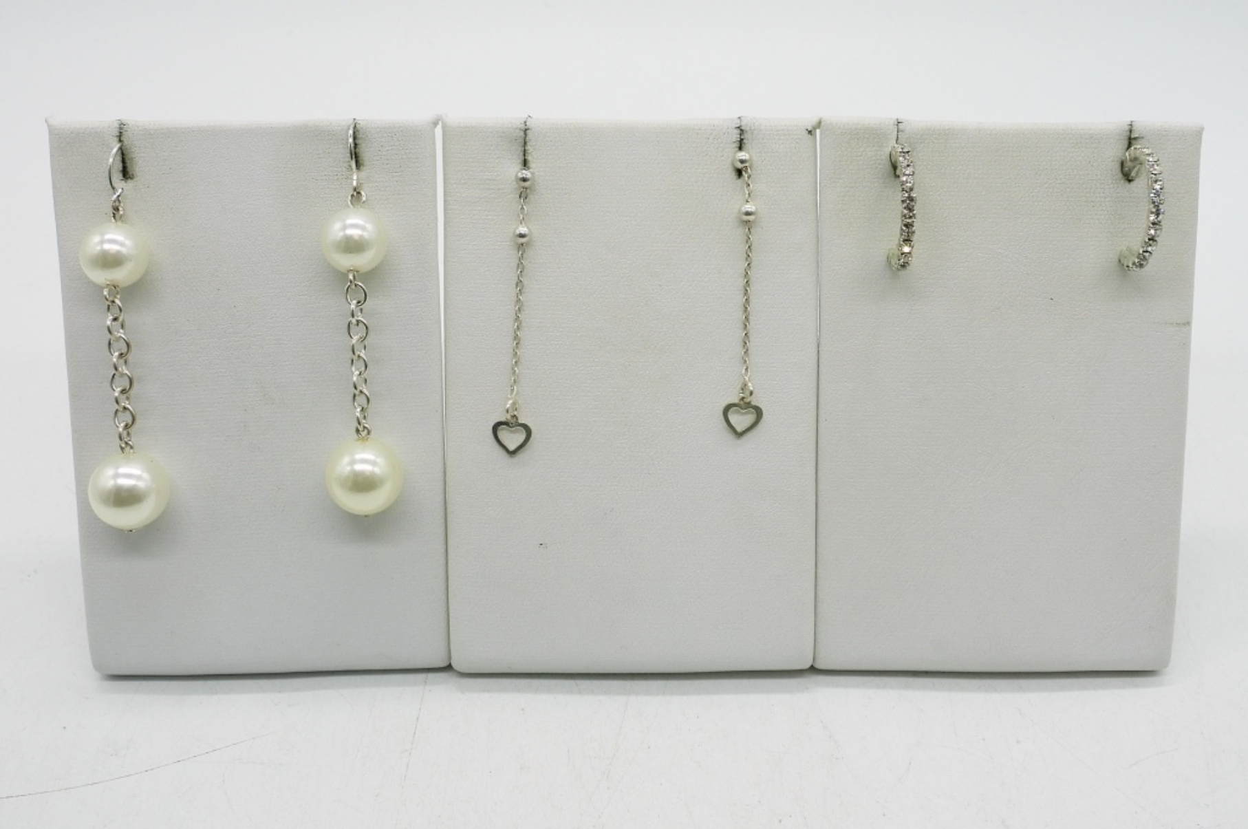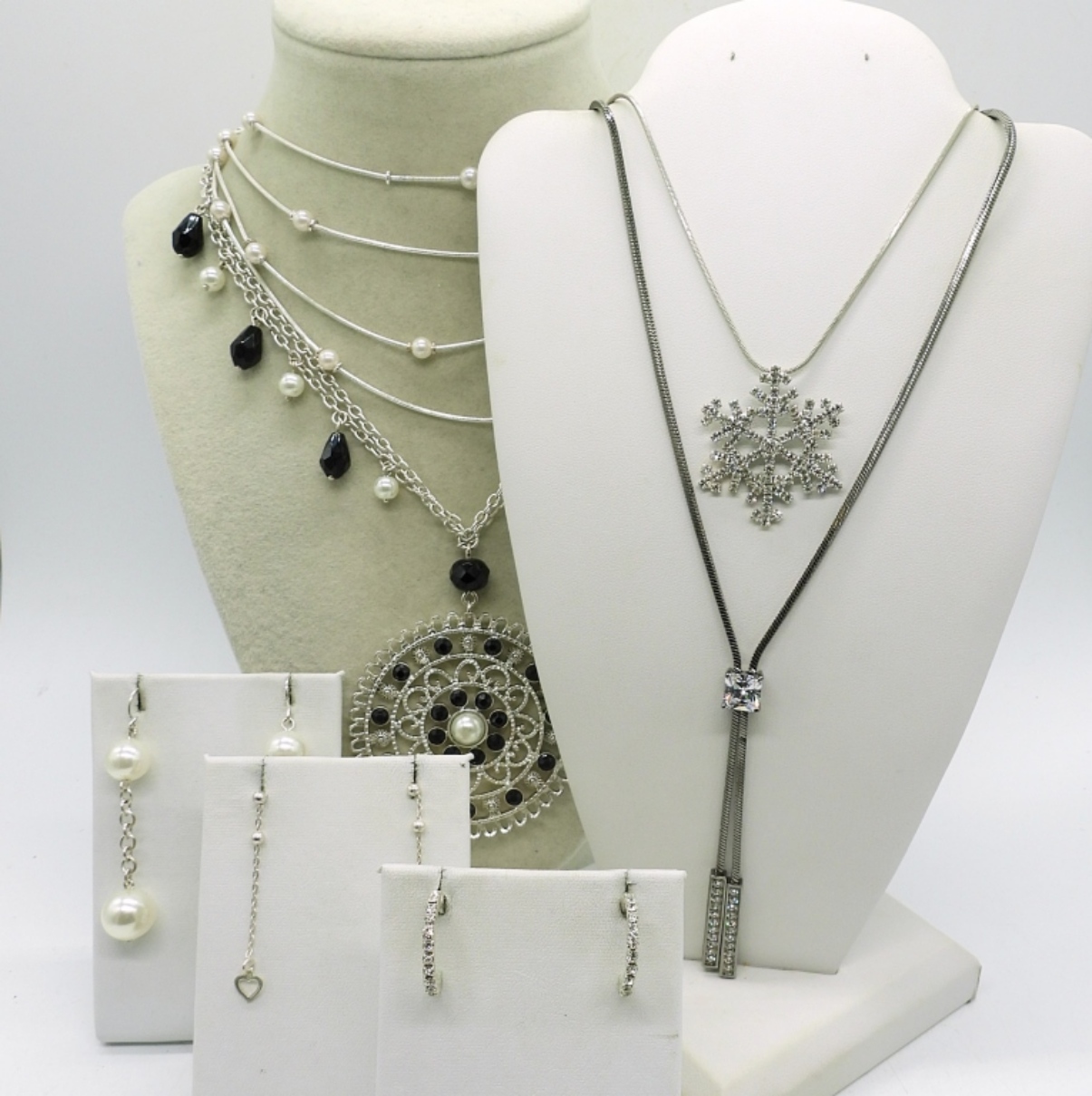 FOUR NECKLACES, 18 & 24″. THREE PAIR OF FASHION EARRINGS.