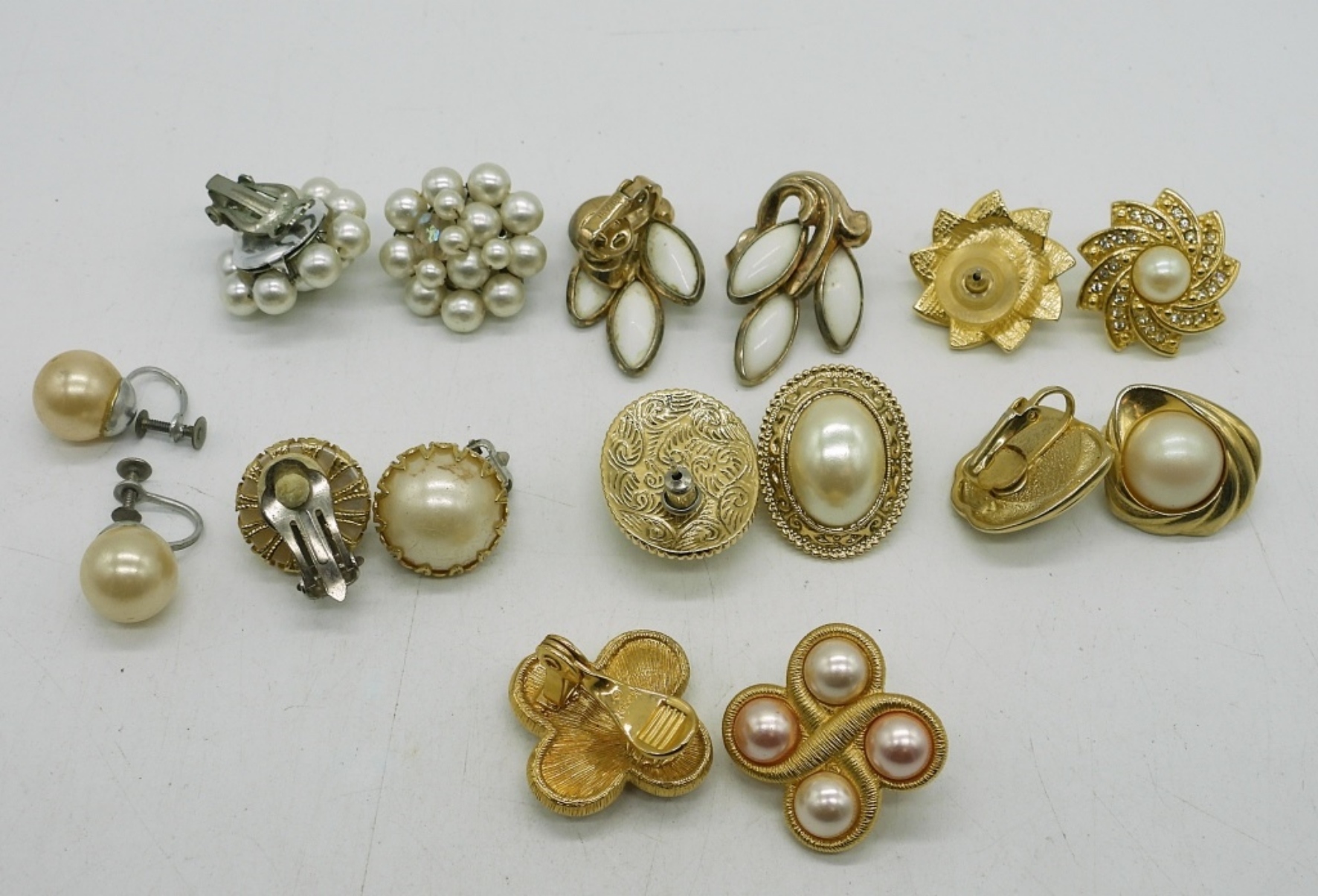 EIGHT PAIR OF VINTAGE EARRINGS. CLIP ON & PIERCED. GOLD AND SILVER TONE