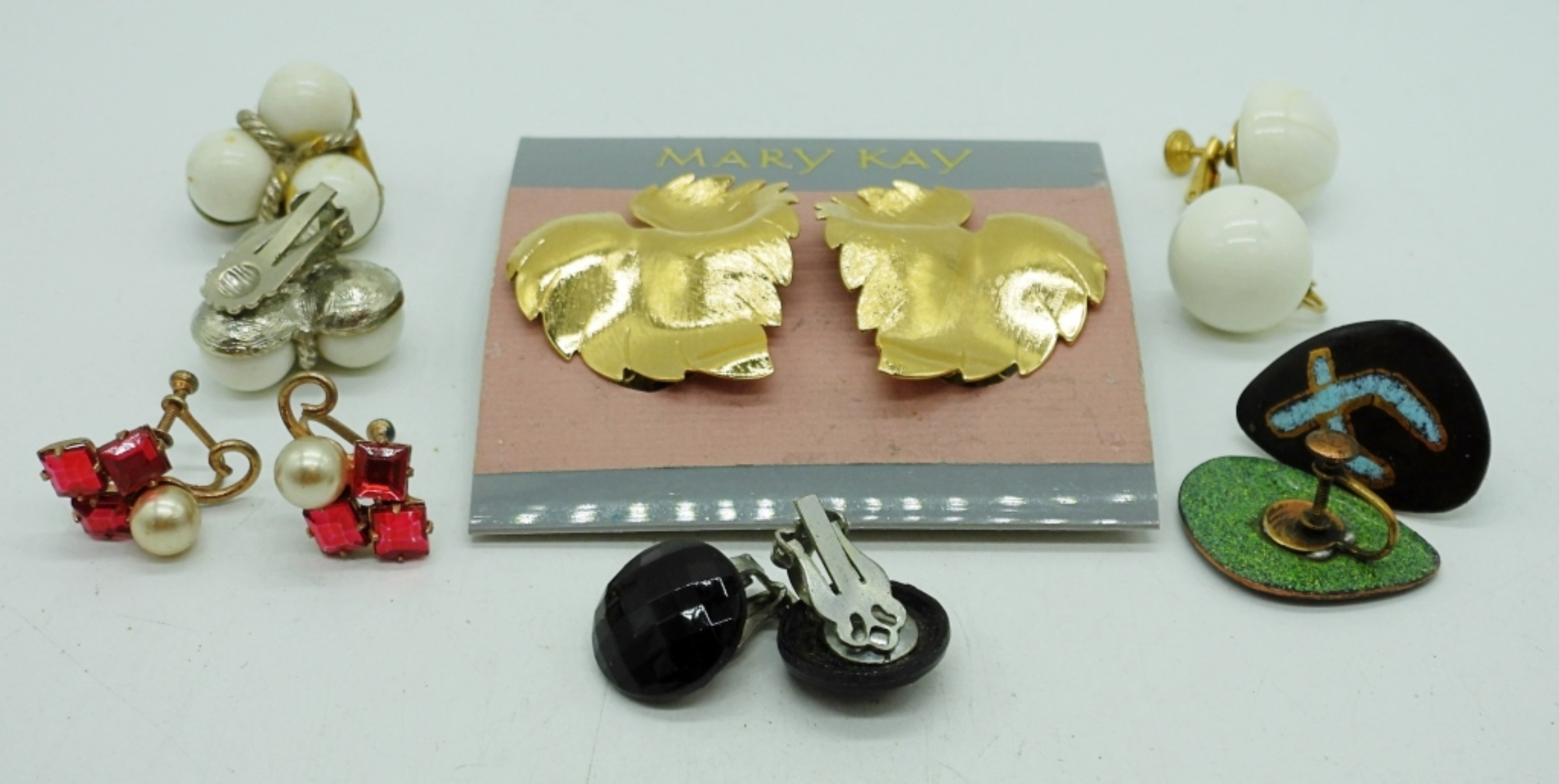 SIX PAIR OF VINTAGE EARRINGS. CLIP ON AND SCREW BACKS.