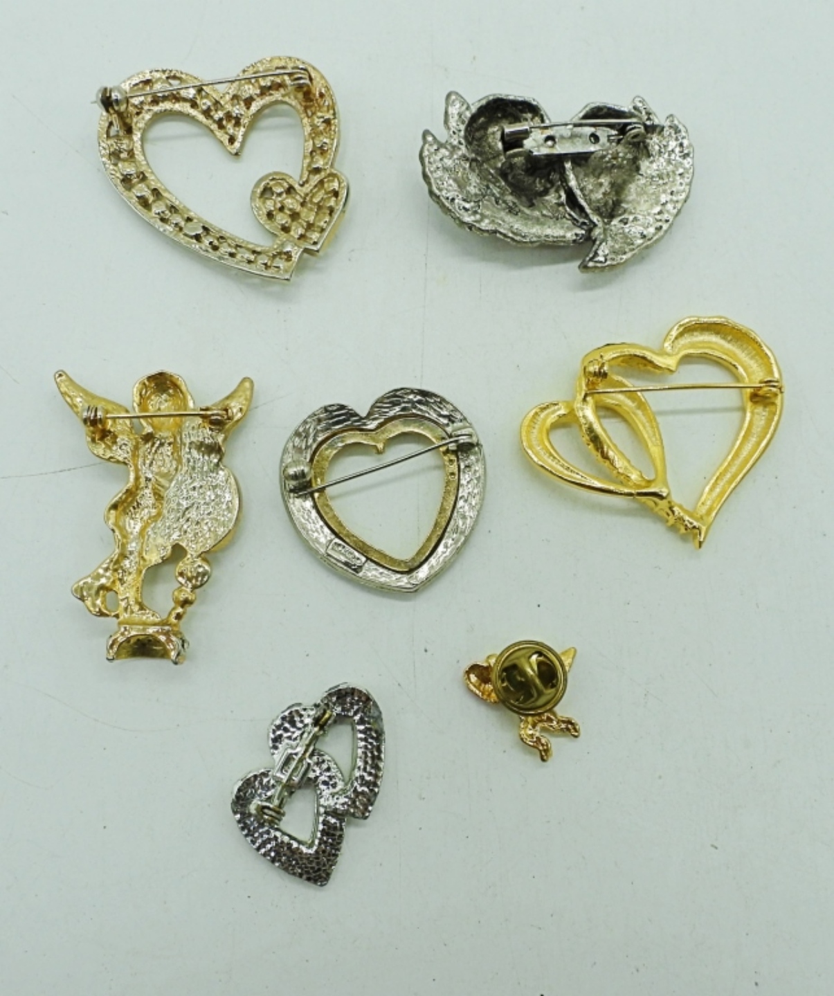 SEVEN HEART AND ANGEL PINS. 1/2″ – 2″.