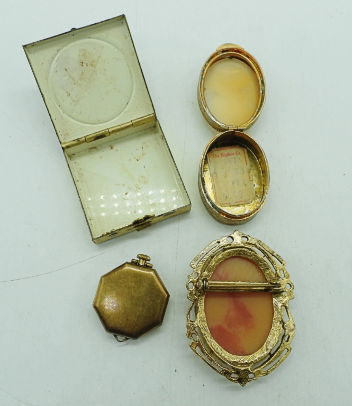 VTG CAMEO BOXES, PINS & TINY WATCH