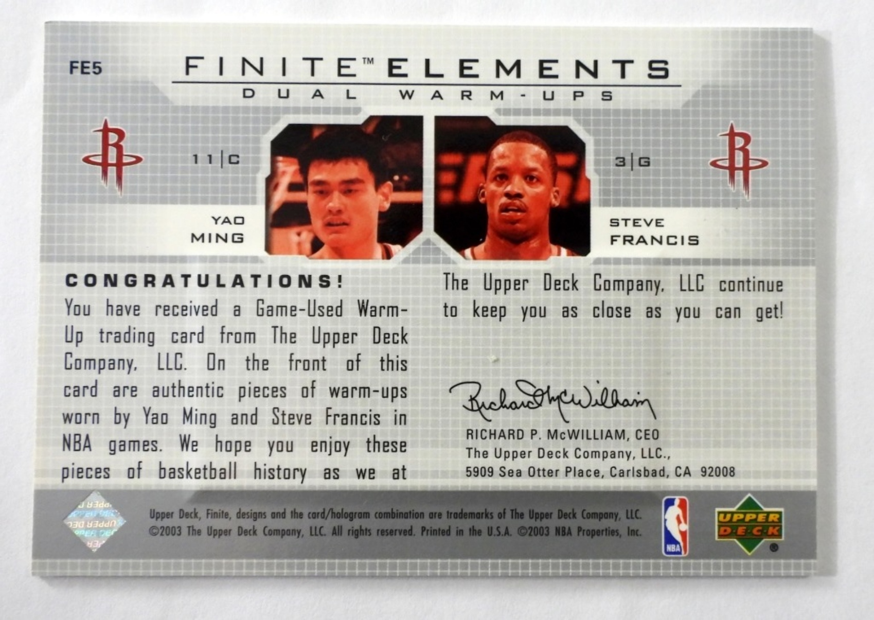 UPPER DECK DUAL JERSEY YAO MING AND STEVE FRANCIS