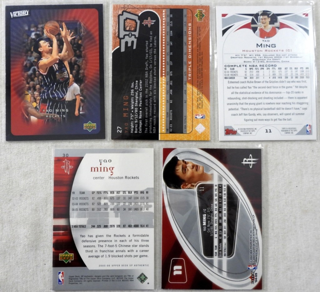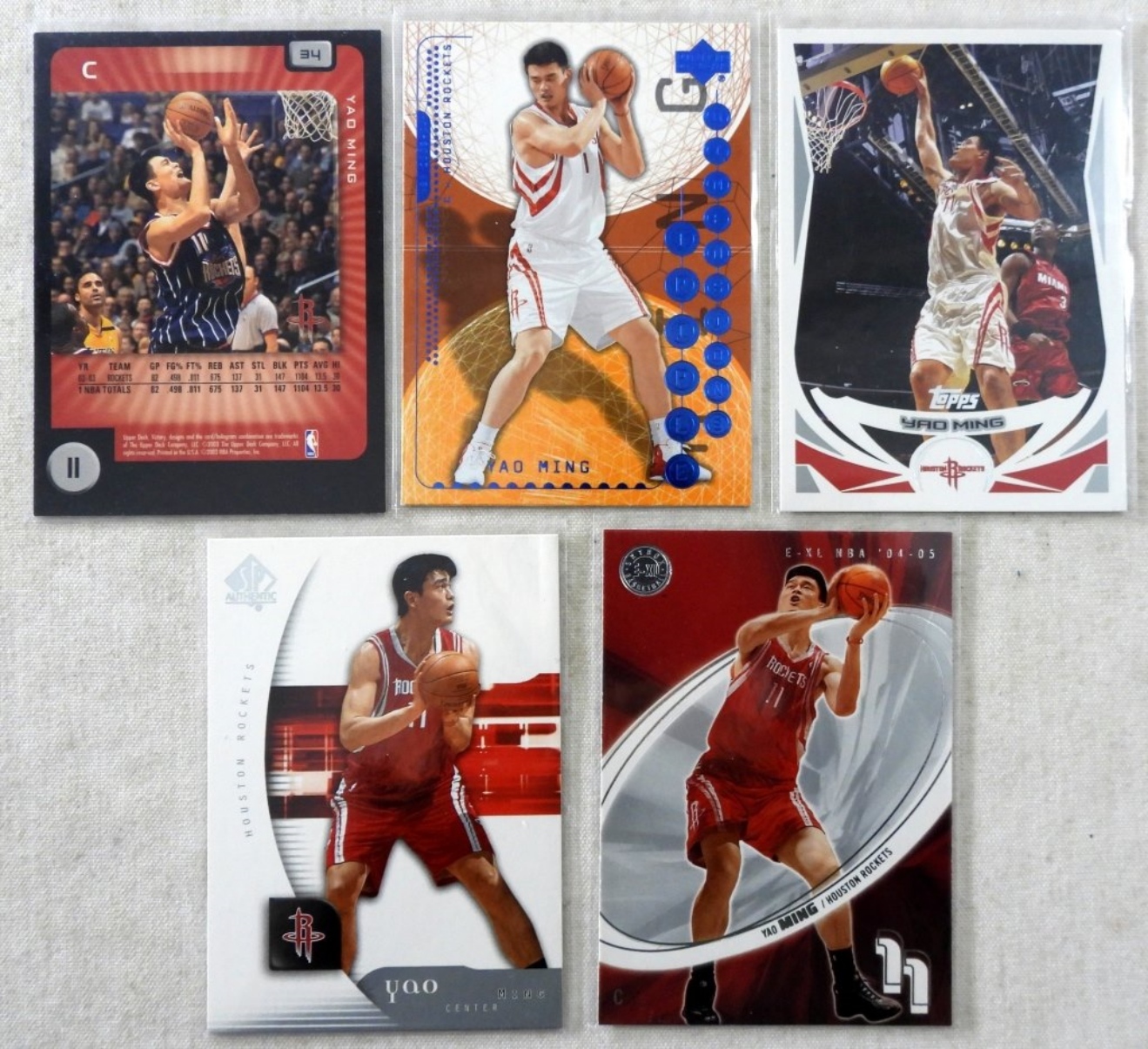(5) YAO MING BASKETBALL CARDS ,FLEER UPPER DECK & MORE