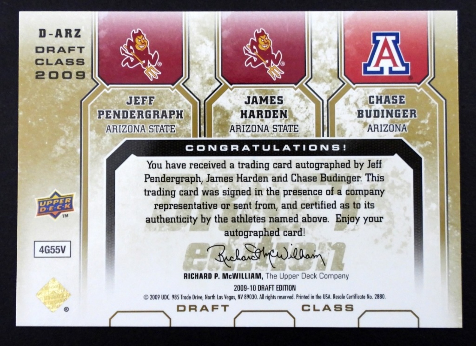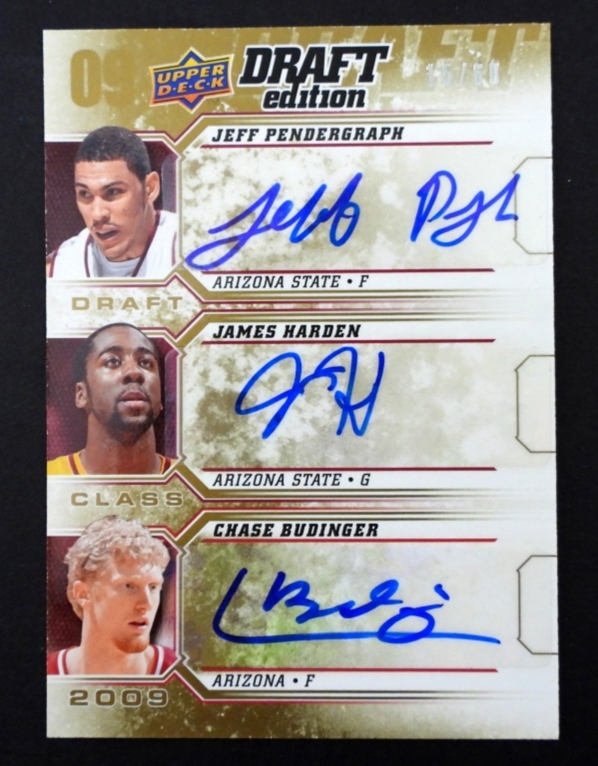 2009-10 UPPER DECK DRAFT EDITION DRAFT CLASS AUTOGRAPH JAMES HARDEN ,FEKK PENDERGRAPH AND CHASE BUDINGER