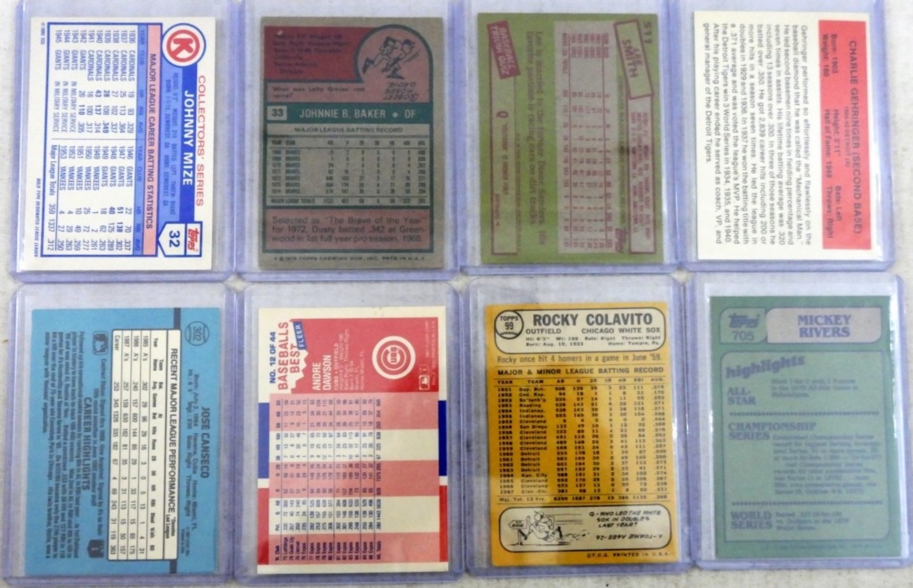 CHARLIE GEHRINGER, LEE SMITH, DUSTY BAKER, JOHNNY MIZE, MICKEY RIVERS, ROCKY COLAVITO, ANDRE DAWSON, JOSE CANSECO – NO COA’s / UNVERIFIED