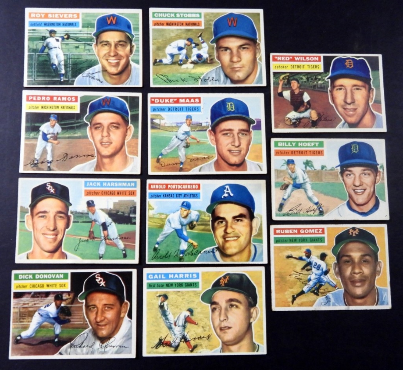 (11) 1956 TOPPS BASEBALL CARDS ,#75 ROY SIEVERS & MORE( OVERALL G-VGEX)