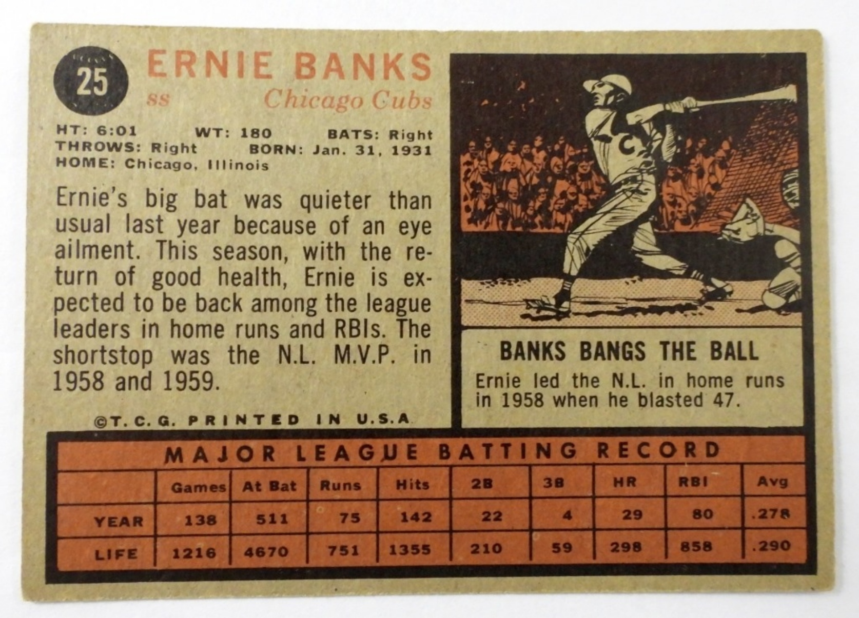 1962 TOPPS #25 ERNIE BANKS (VGEX)