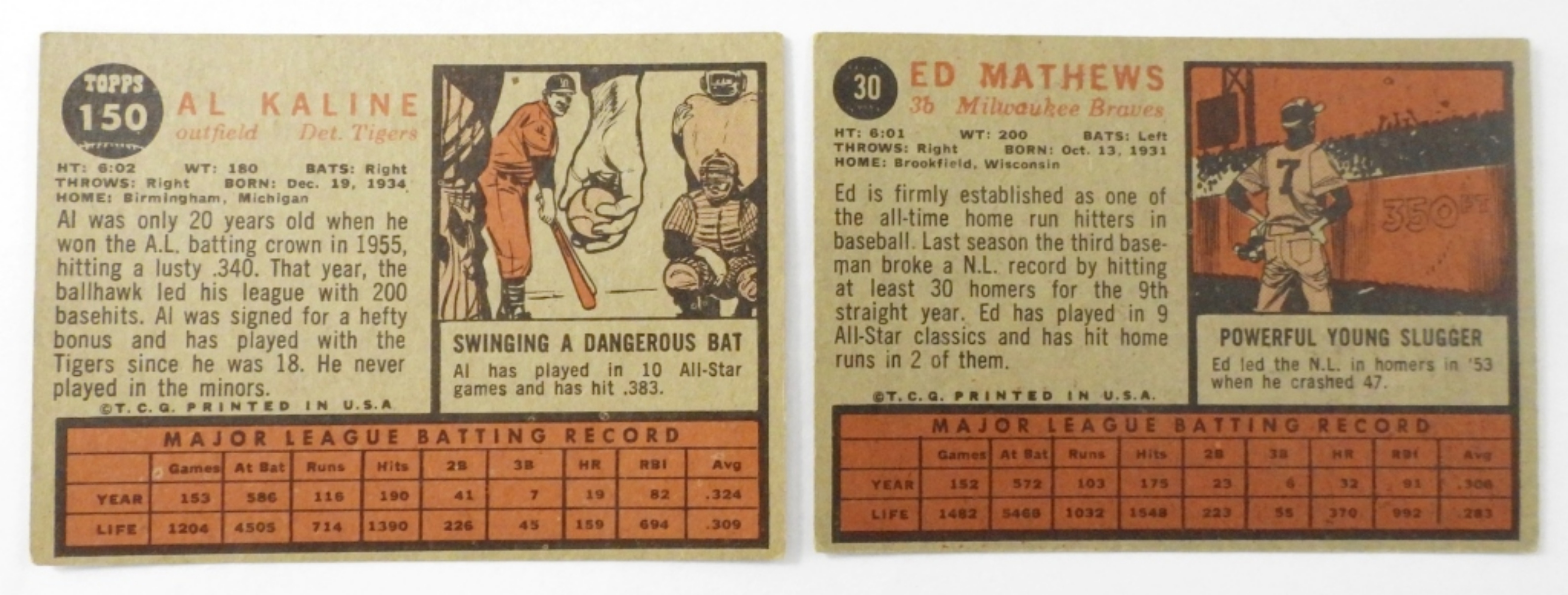 (2) 1962 TOPPS BASEBALL CARDS #30ED MATHEWS & #150 AL KLINE (VG/VGEX)