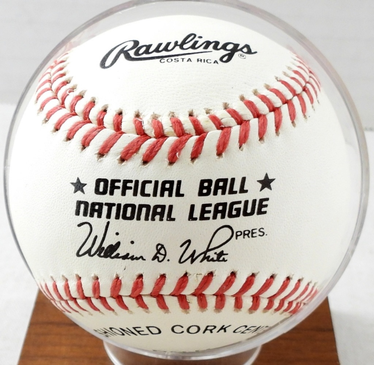 NATIONAL LEAGUE BALL – with WOOD BASE BALL HOLDER – NO COA