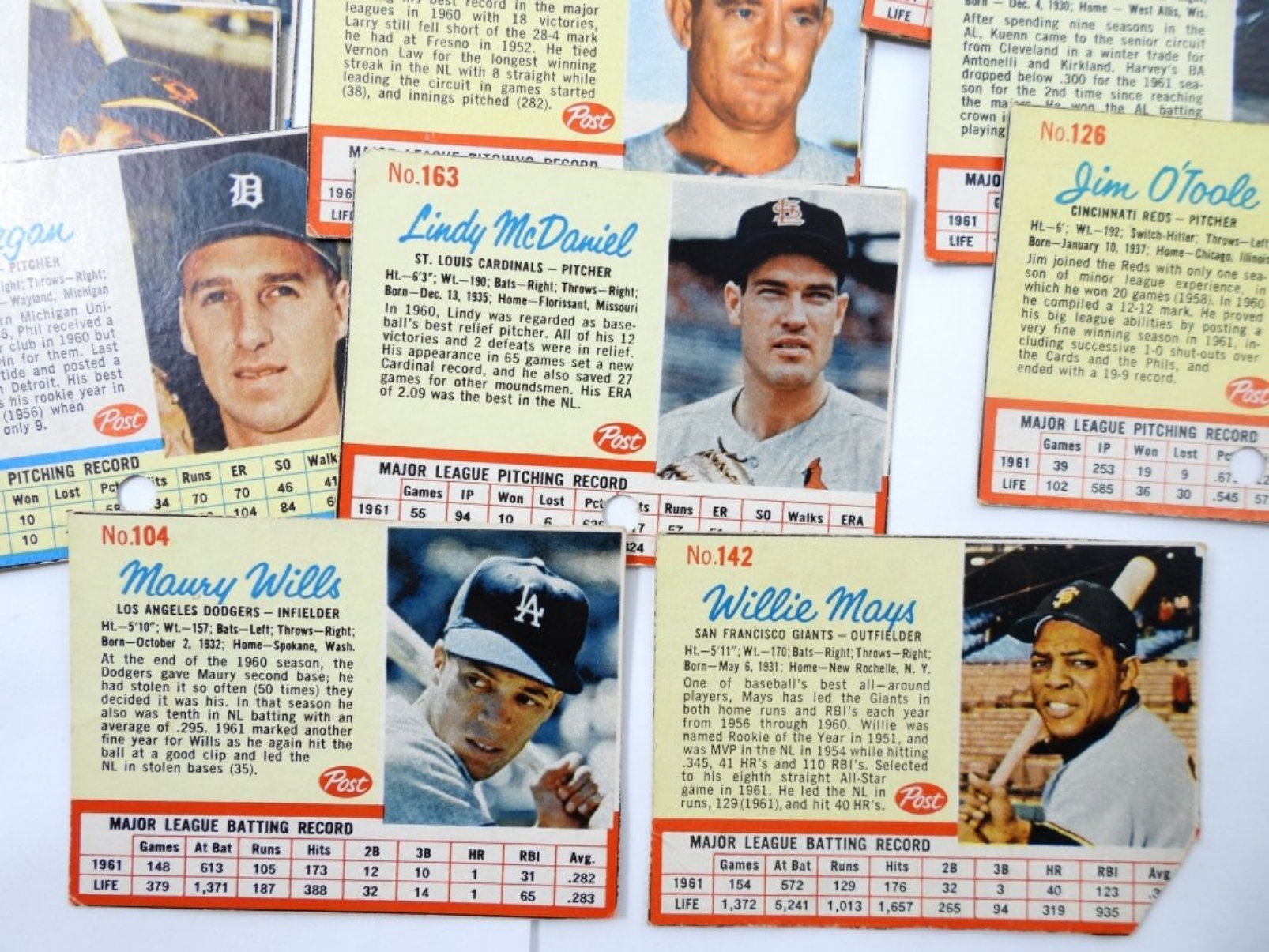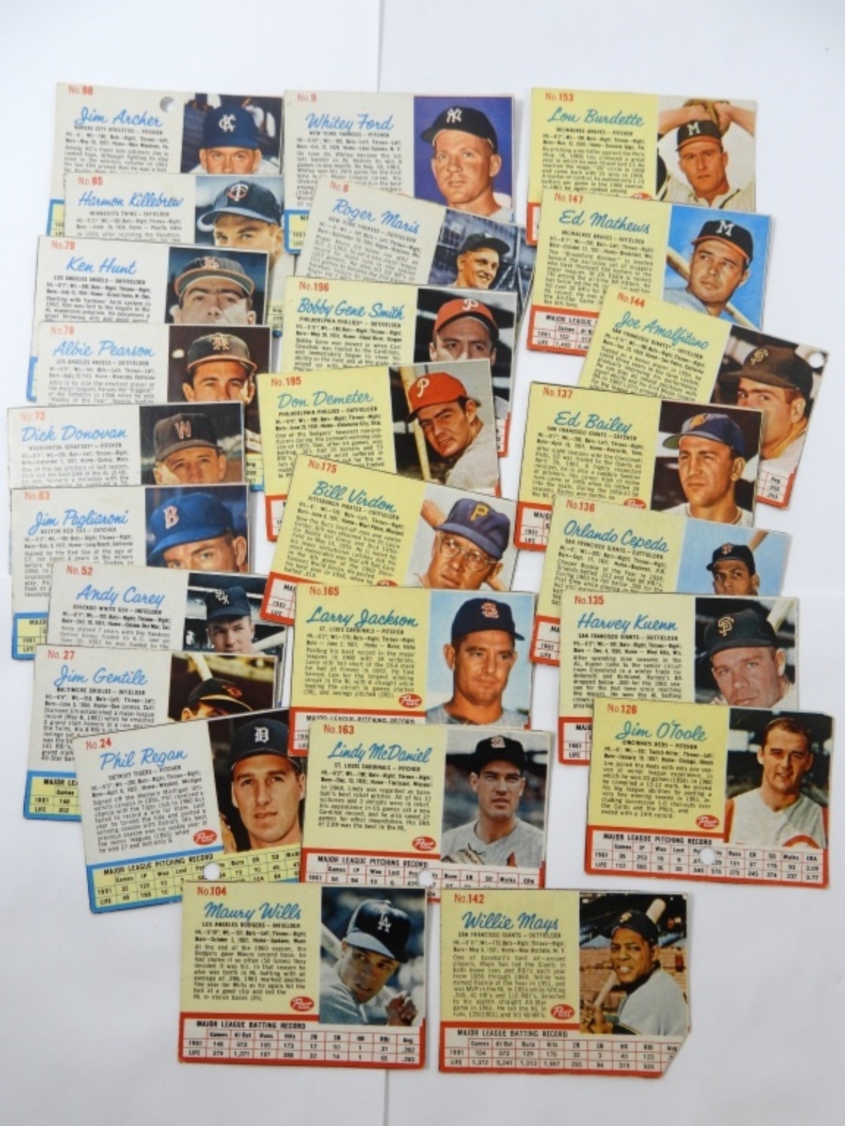 (25) 1962 POST BASEBALL CARDS #142 WILLIE MAYS,#6 ROGER MARIS & MORE( WELL PRESERVED