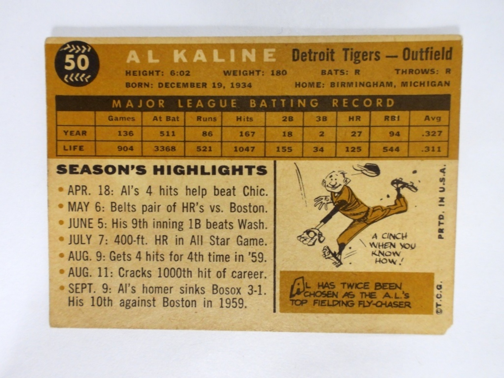 1960 TOPPS #50 AL KALINE (VG/G )