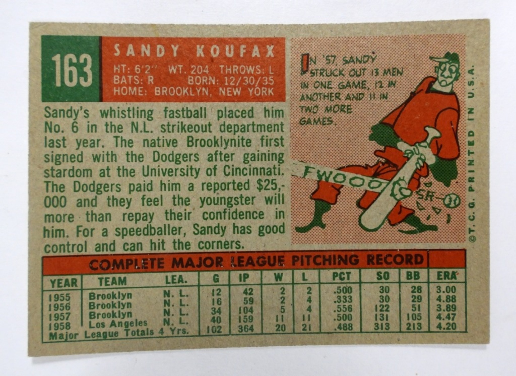 1959 TOPPS #163 SANDY KOUFAX (VGEX +)