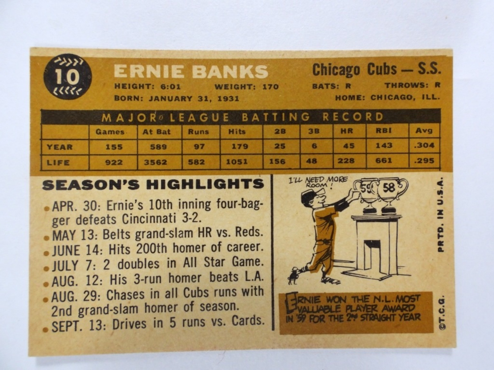 1960 TOPPS #10 ERNIE BANKS (VGEX) LIGHT SURFACE SCRATCHES