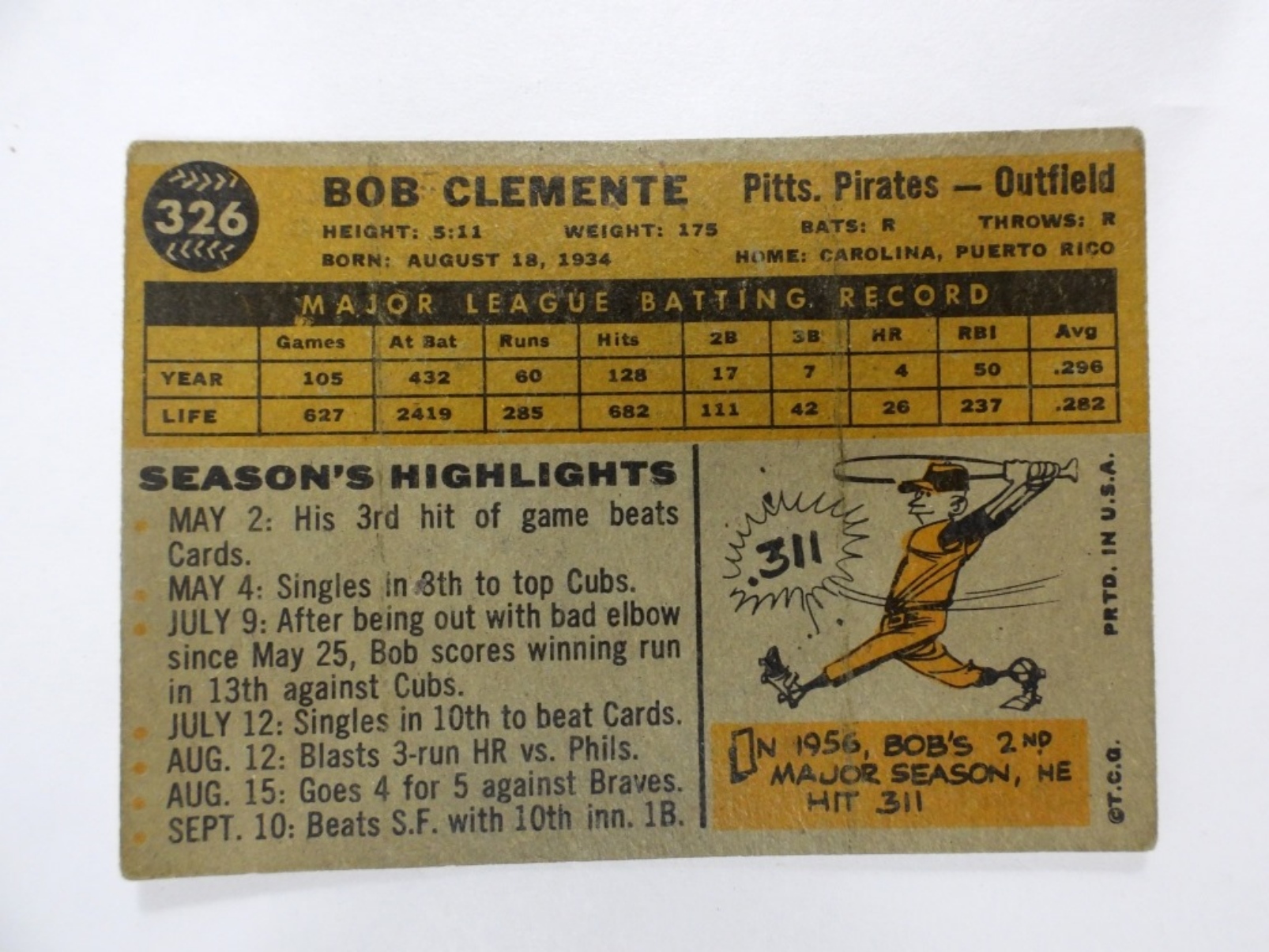 1960 TOPPS# 326 BOB CLEMENTE (VG)
