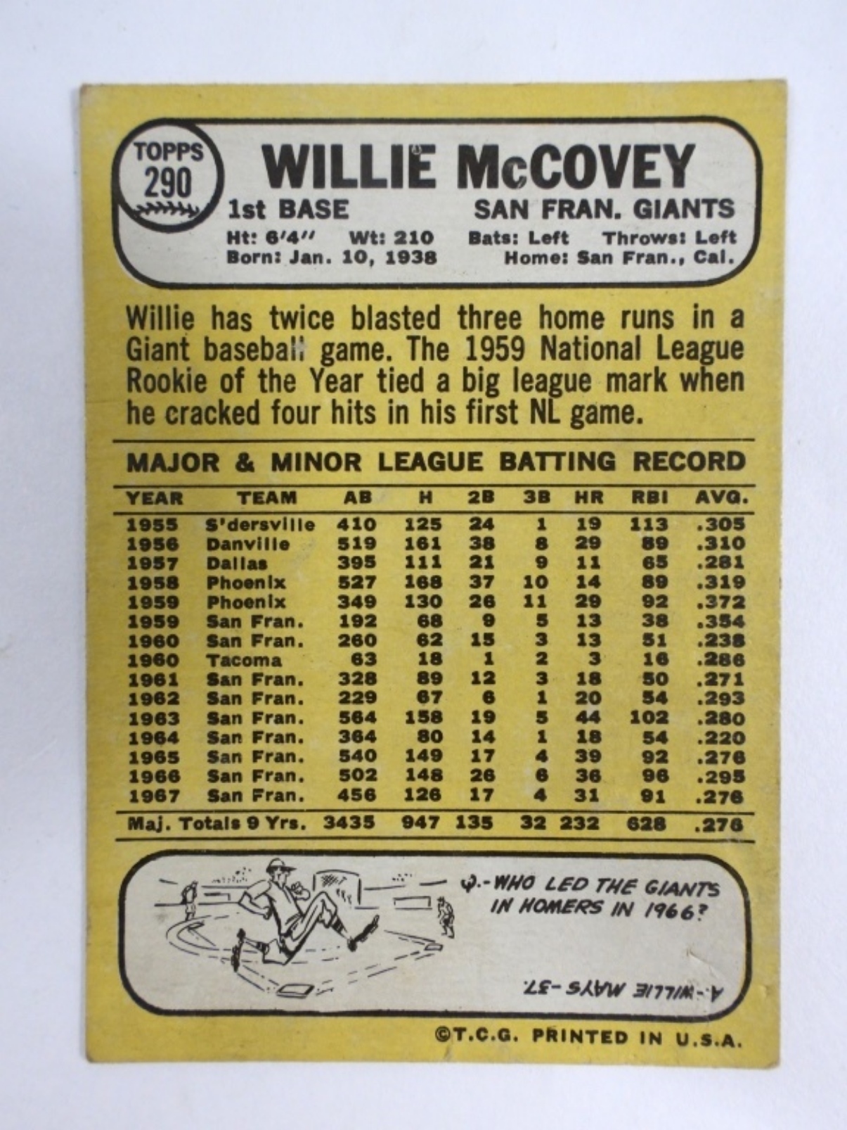1968 TOPPS #290 WILLIE McCOVEY (VGEX)