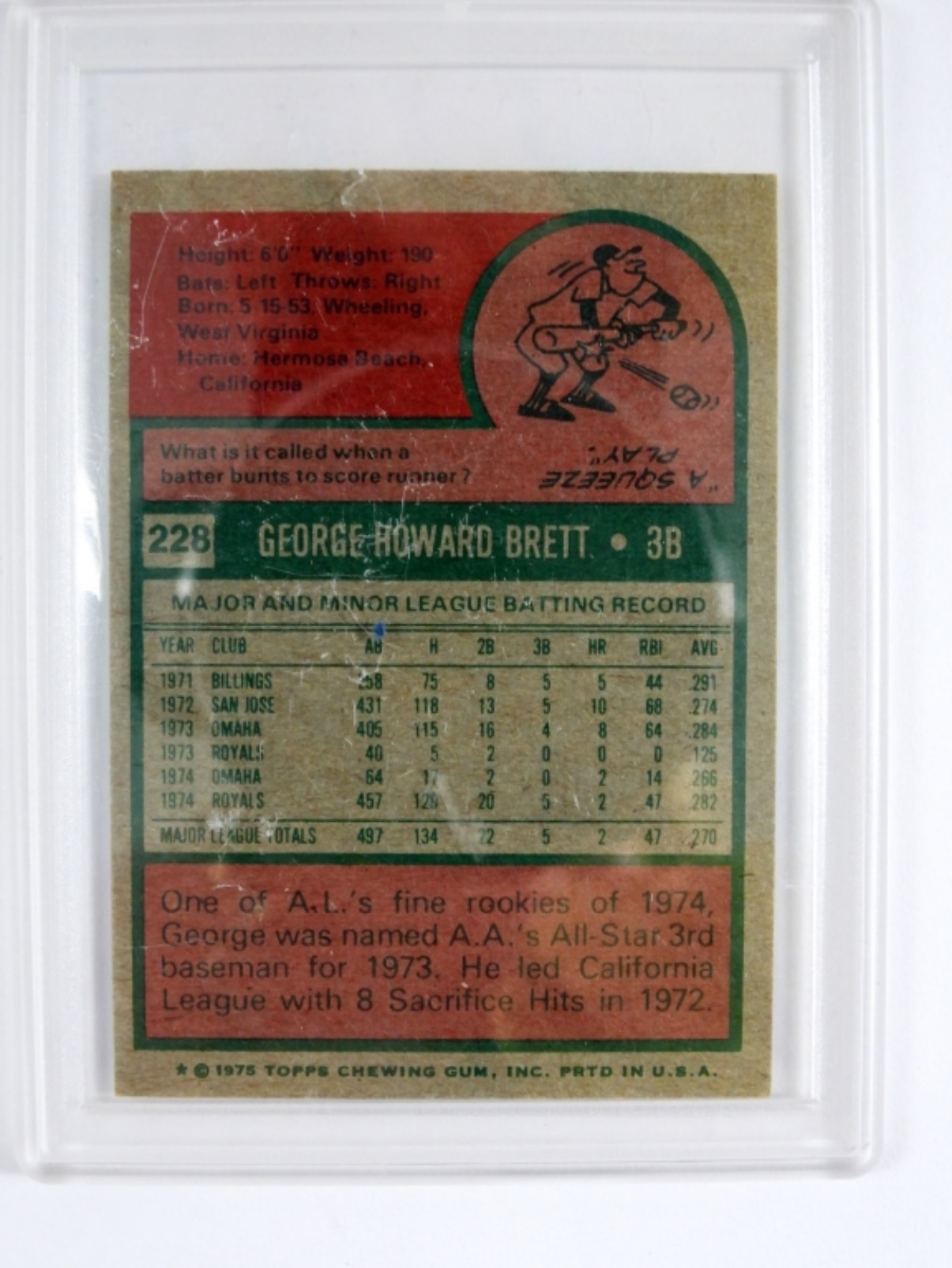 1975 TOPPS #228 GEORGE BRETT ROOKIE (VGEX)