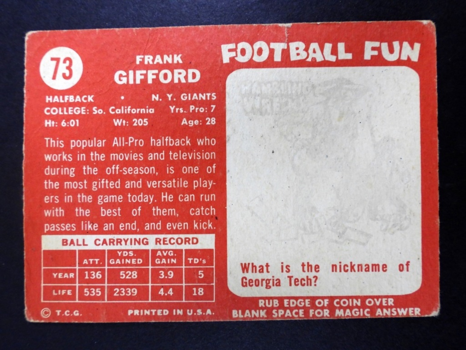 1958 TOPPS #73 FRANK GIFFORD (VG/G)
