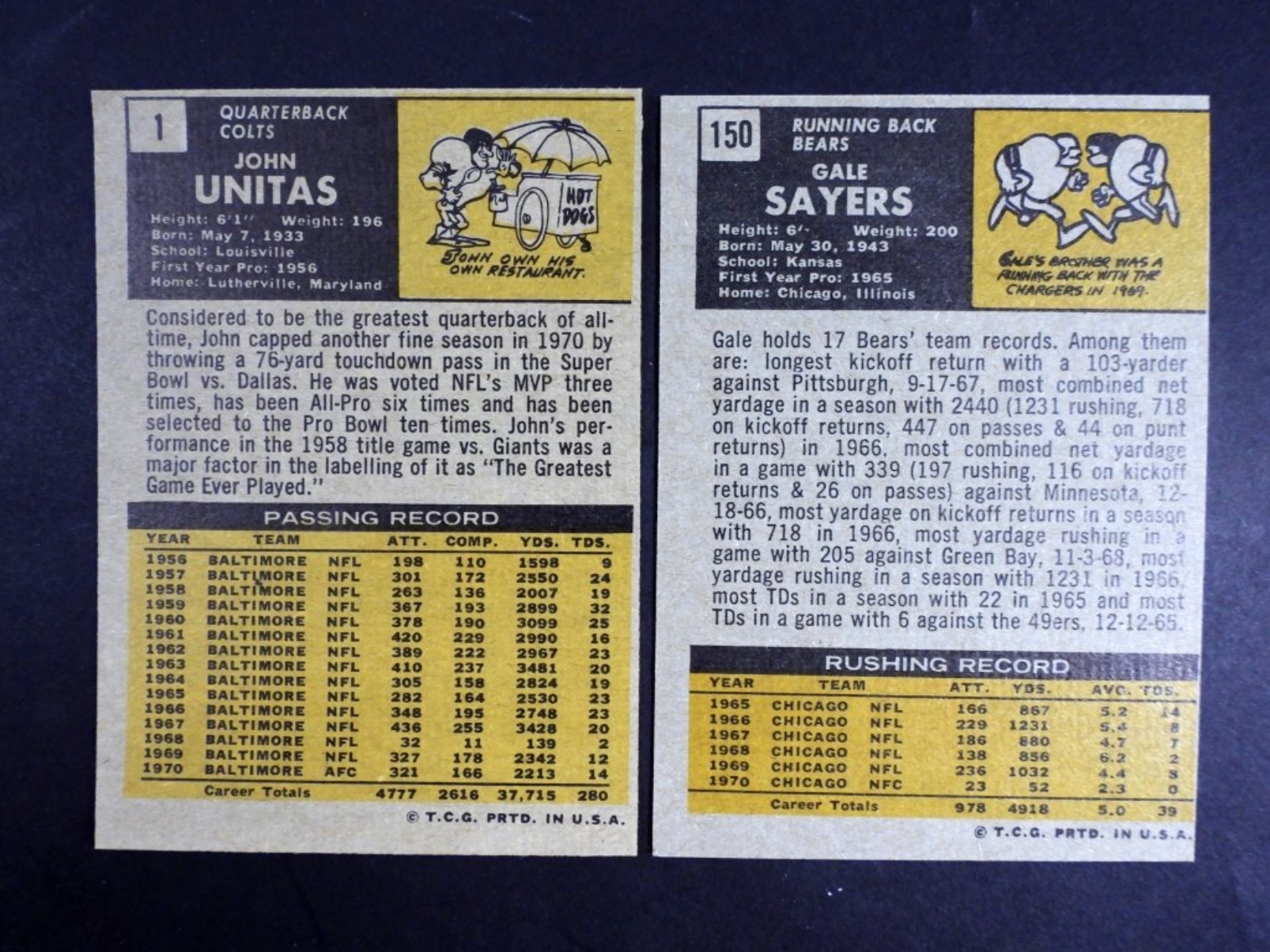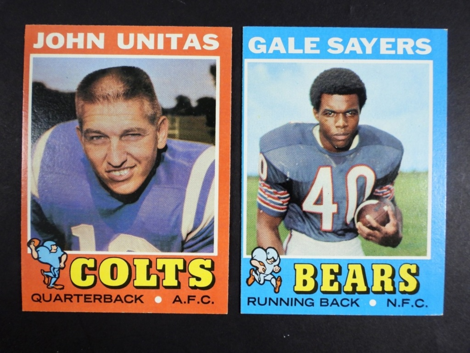 (2) 1971 TOPPS FOOT BALL CARDS #1 JOHN UNITAS & # 50 GALE SAYERS (VGEX)