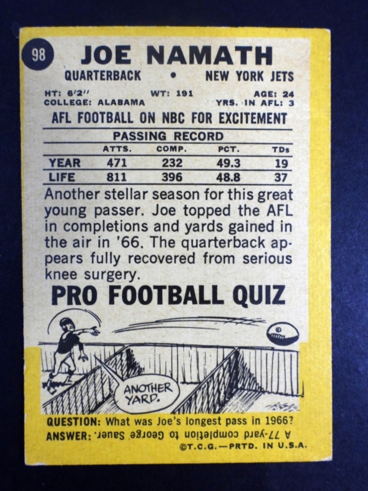 1967 TOPPS SET BREAK #98 JOE NAMATH (VGEX) BOTTOM BORDER CHIPPED