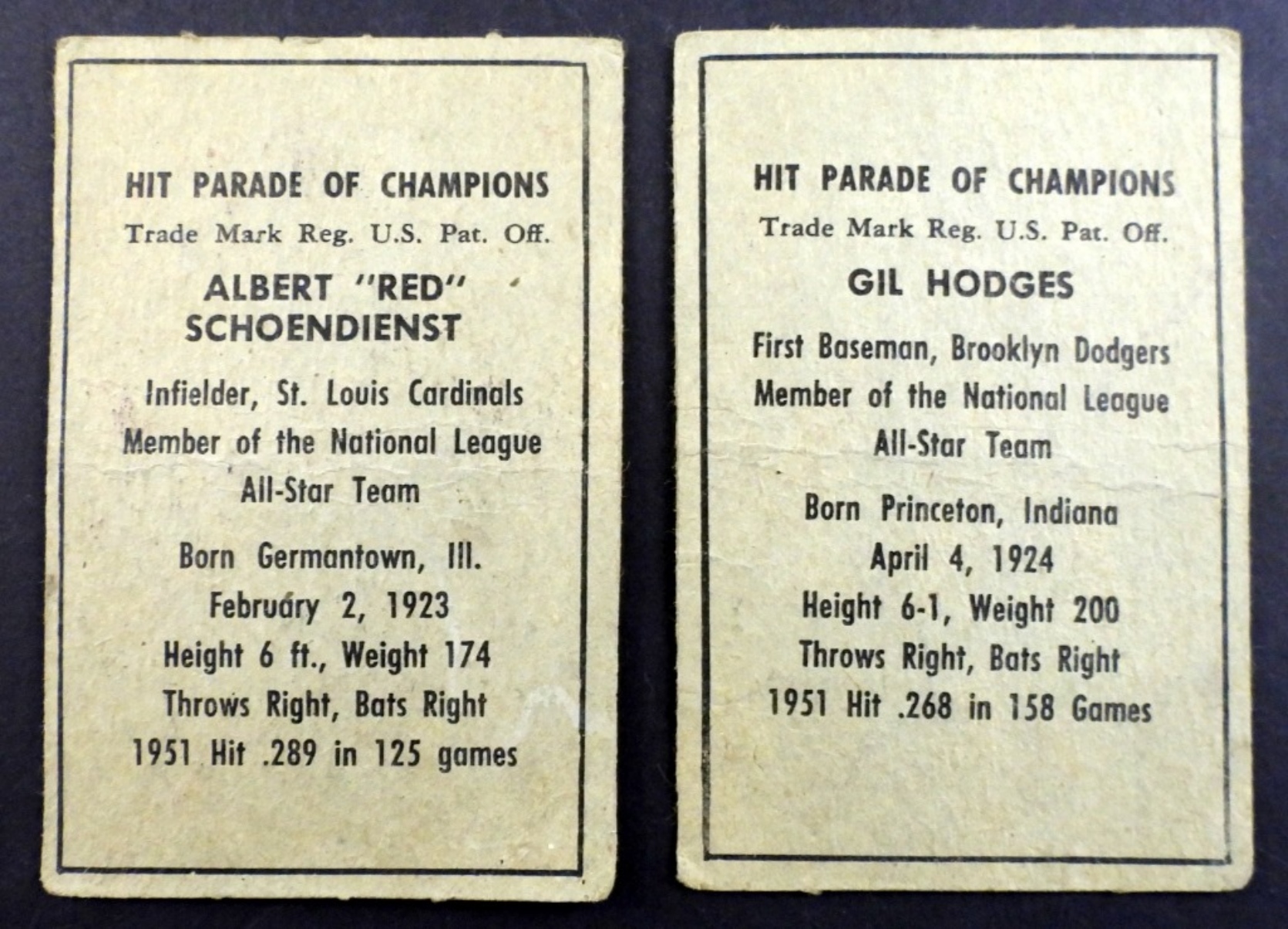 GIL HODGES & RED SCHOENDIENST – BOTH VG with CENTER CREASE