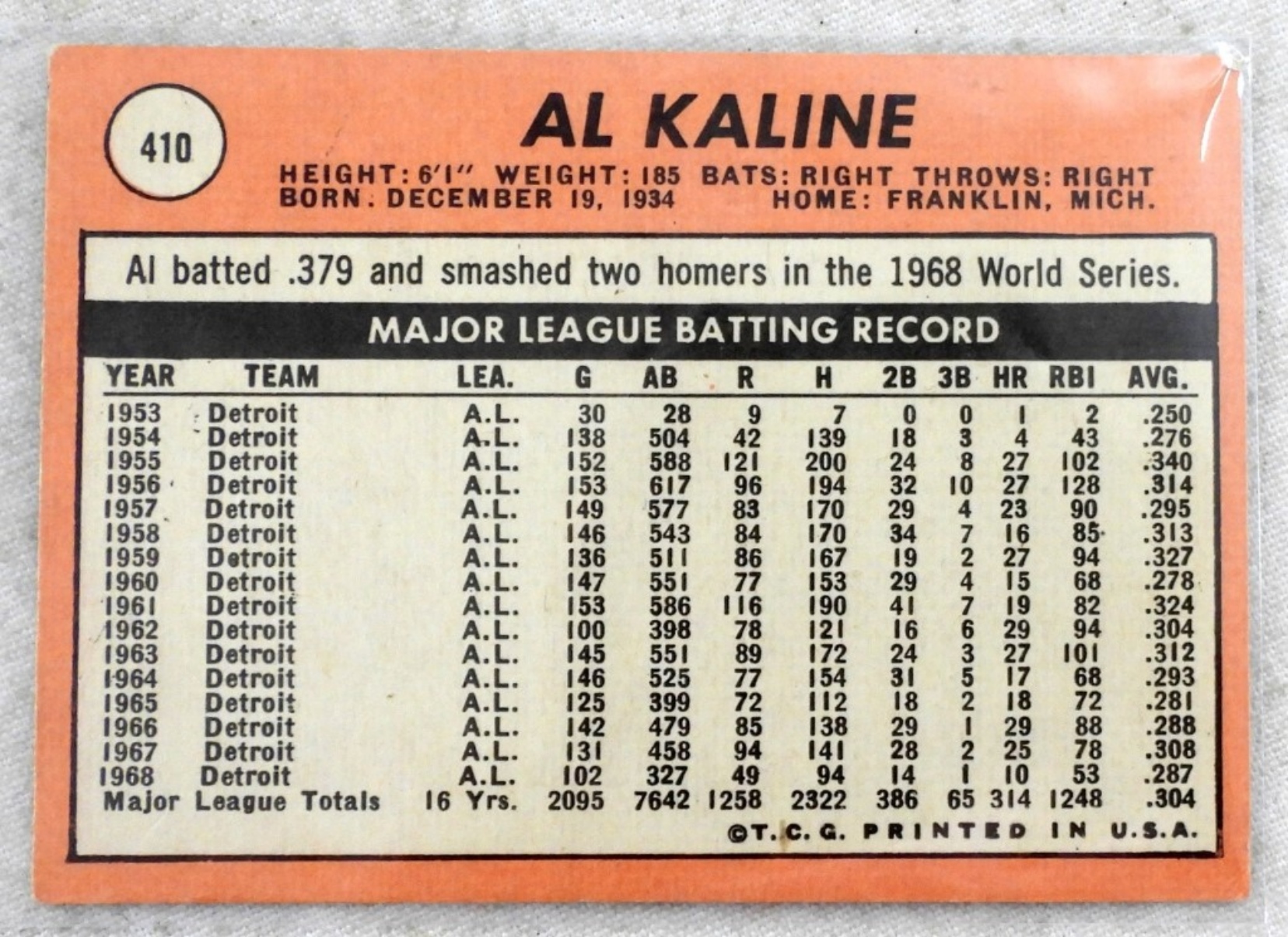 (45) 1969 TOPPS BASEBALL CARDS,#410 AL KLINE & MORE VGEX